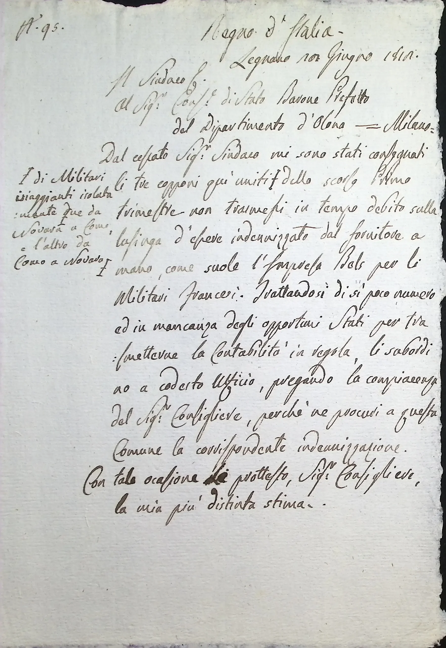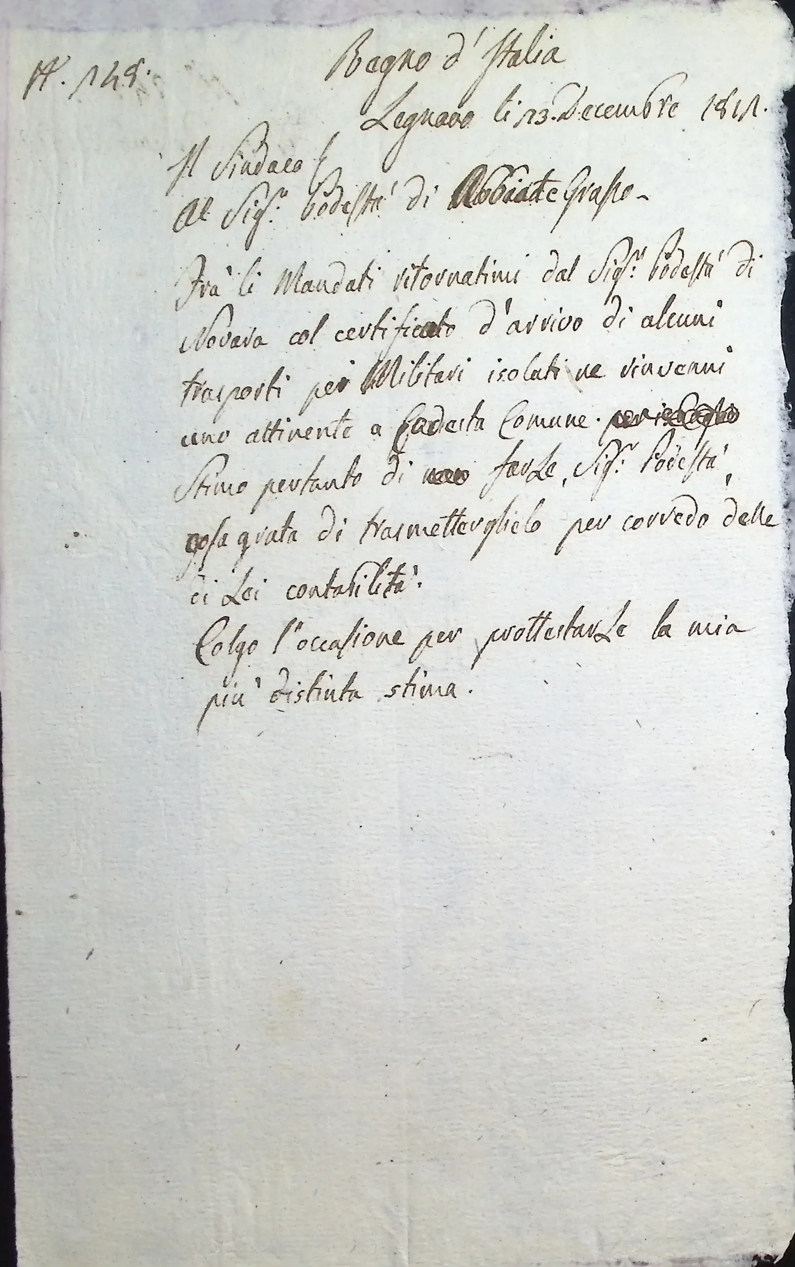 Pratiche varie per somministrazioni militari e rimborso spese relative al Comune