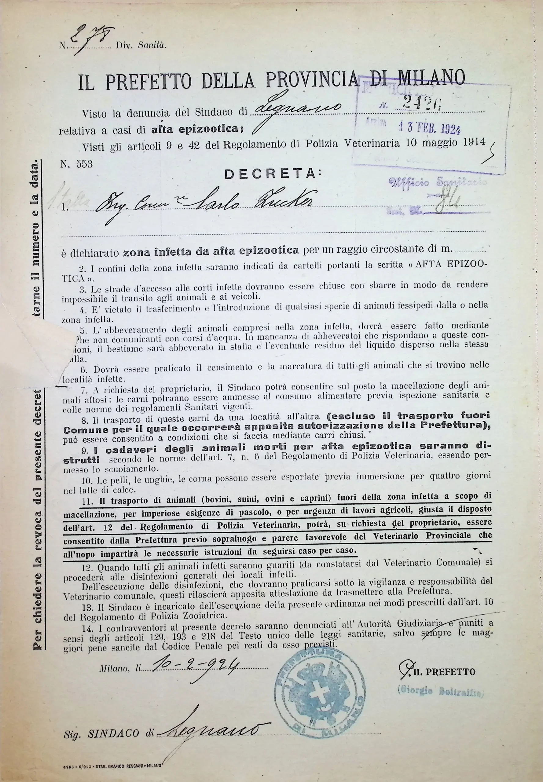 | Classificazione | IV.3 - Epidemie, malattie contagiose, epizoozie |