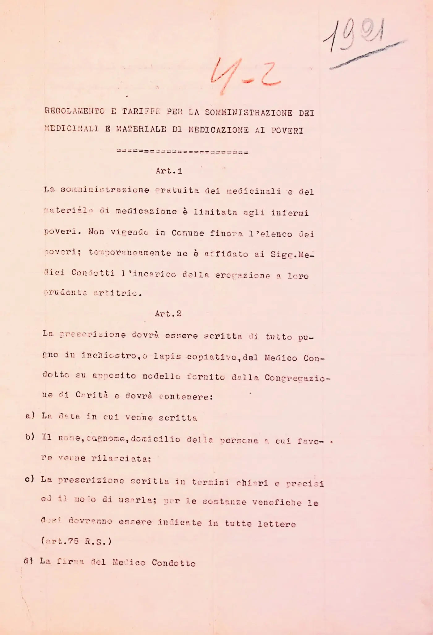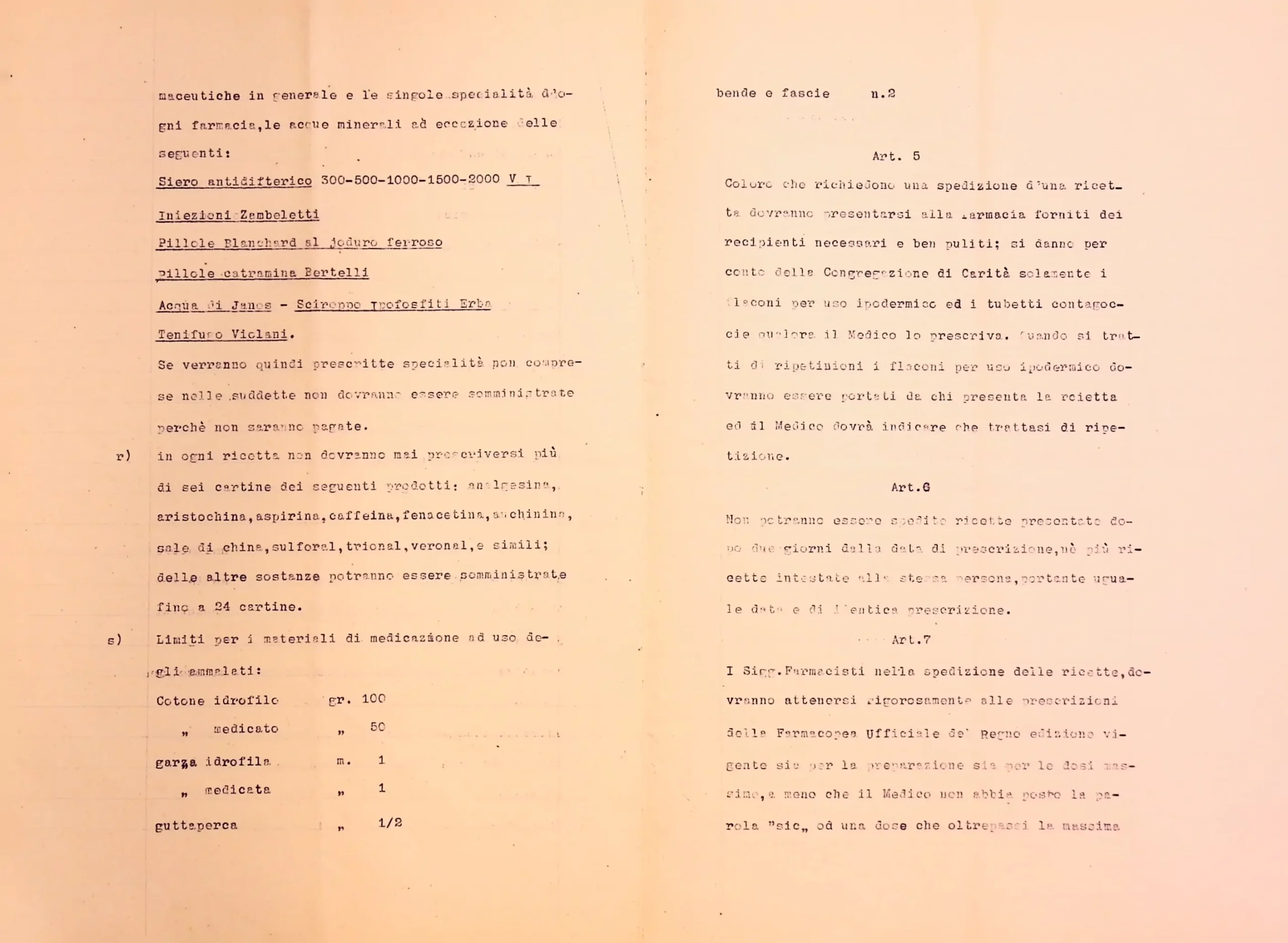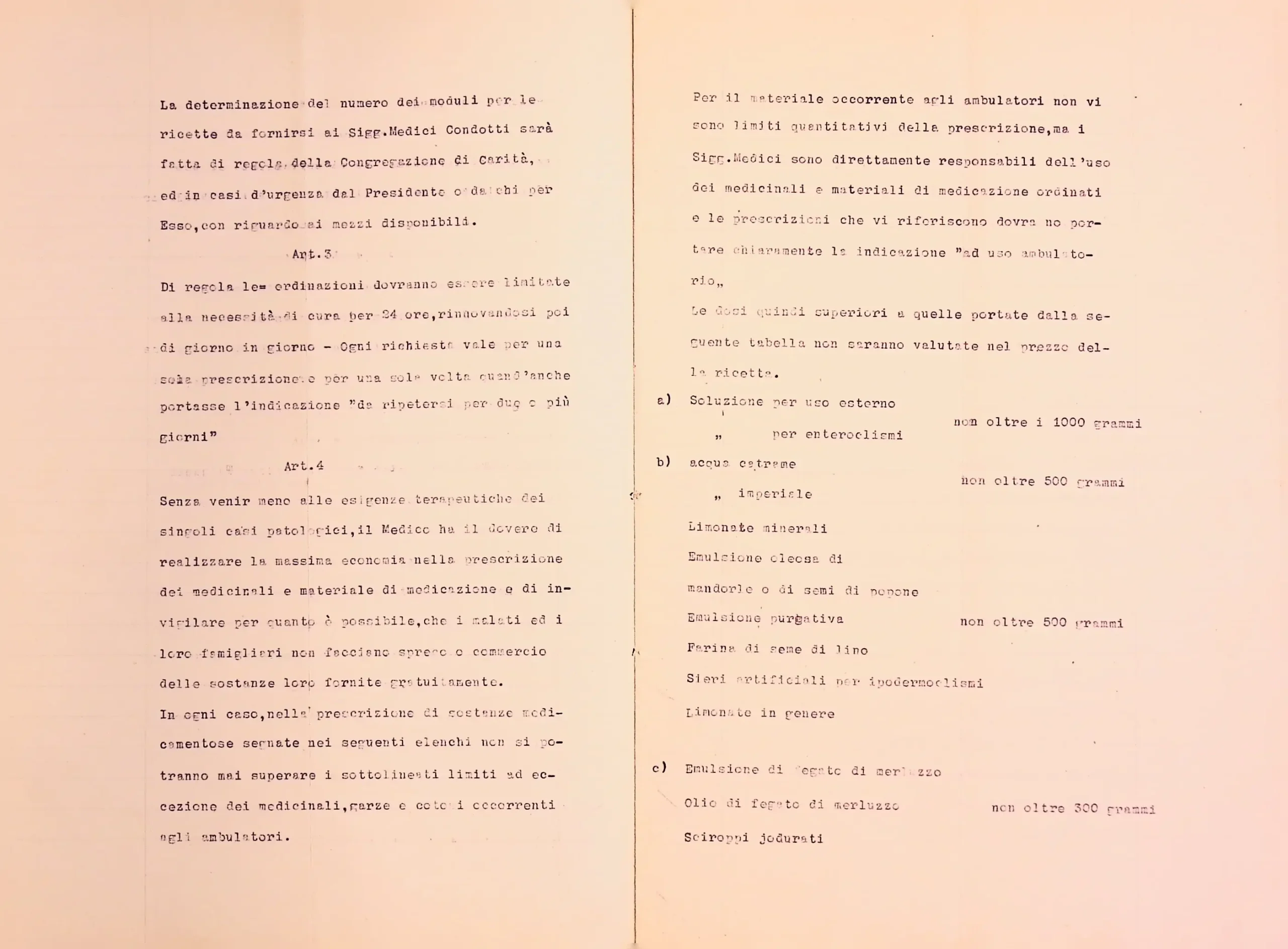 Regolamento e tariffe per la somministrazione dei medicinali e materiale di medicazione ai poveri