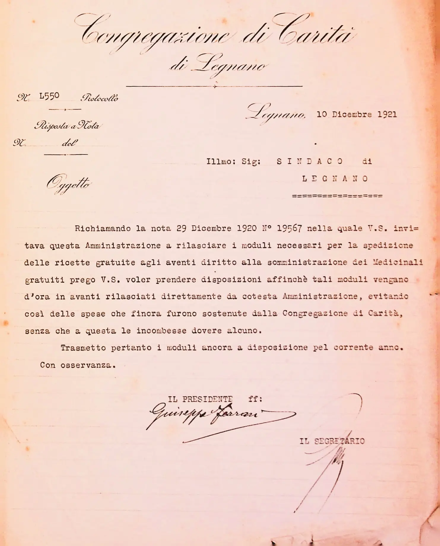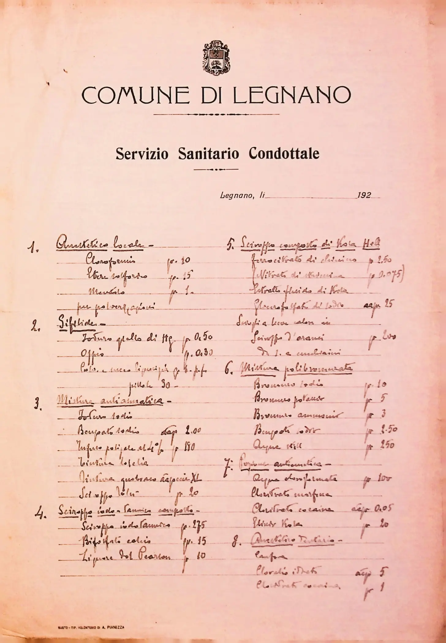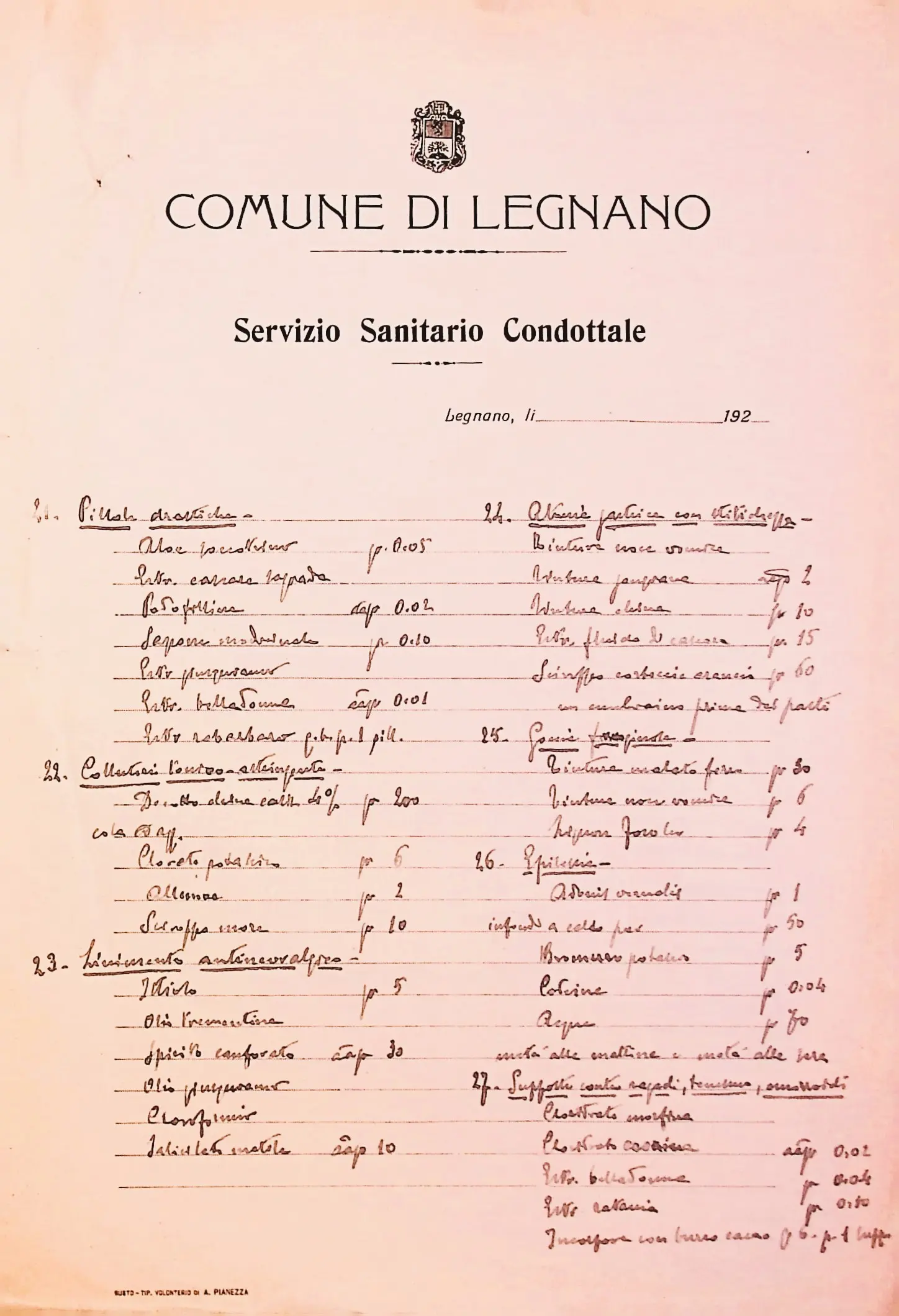Regolamento e tariffe per la somministrazione dei medicinali e materiale di medicazione ai poveri