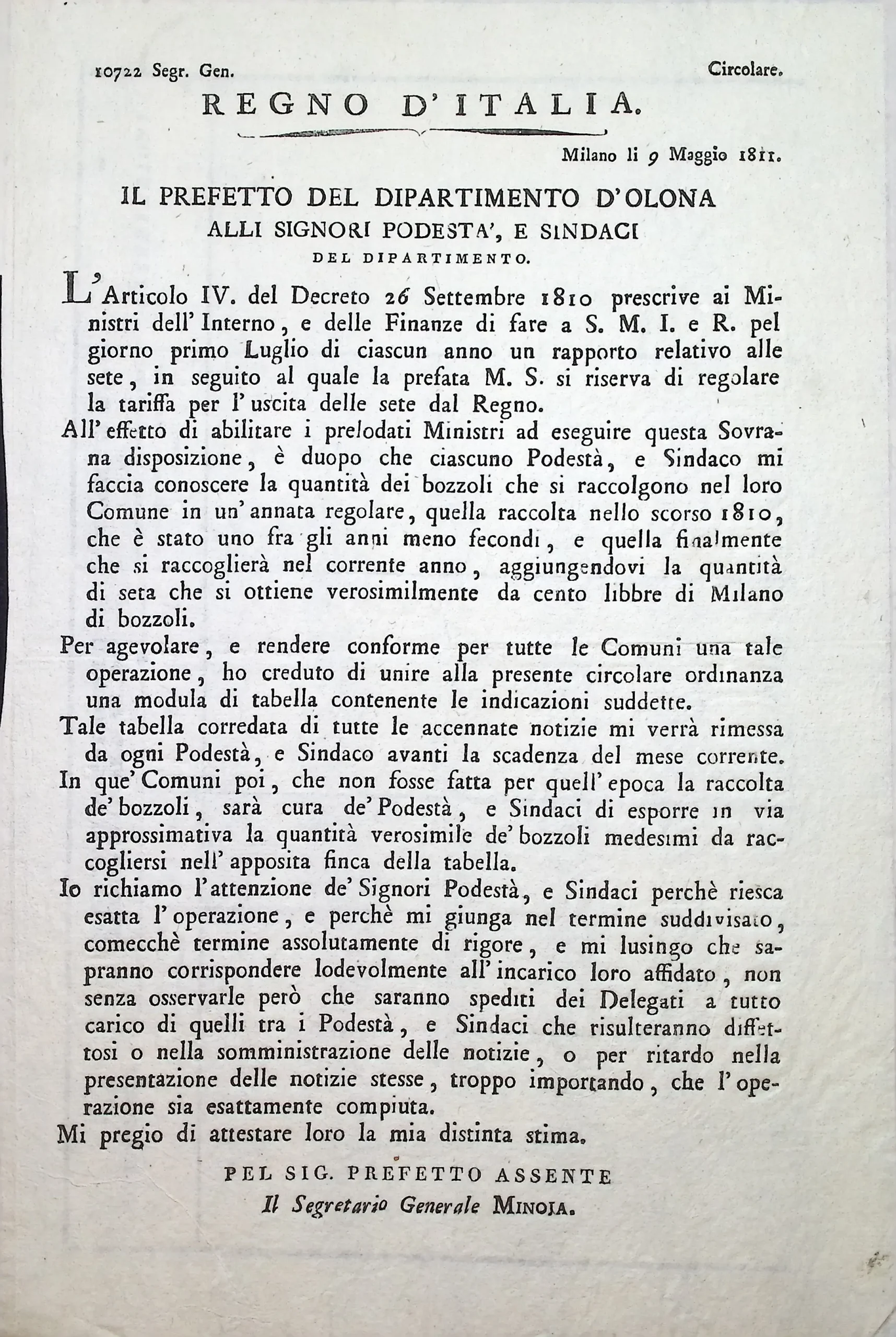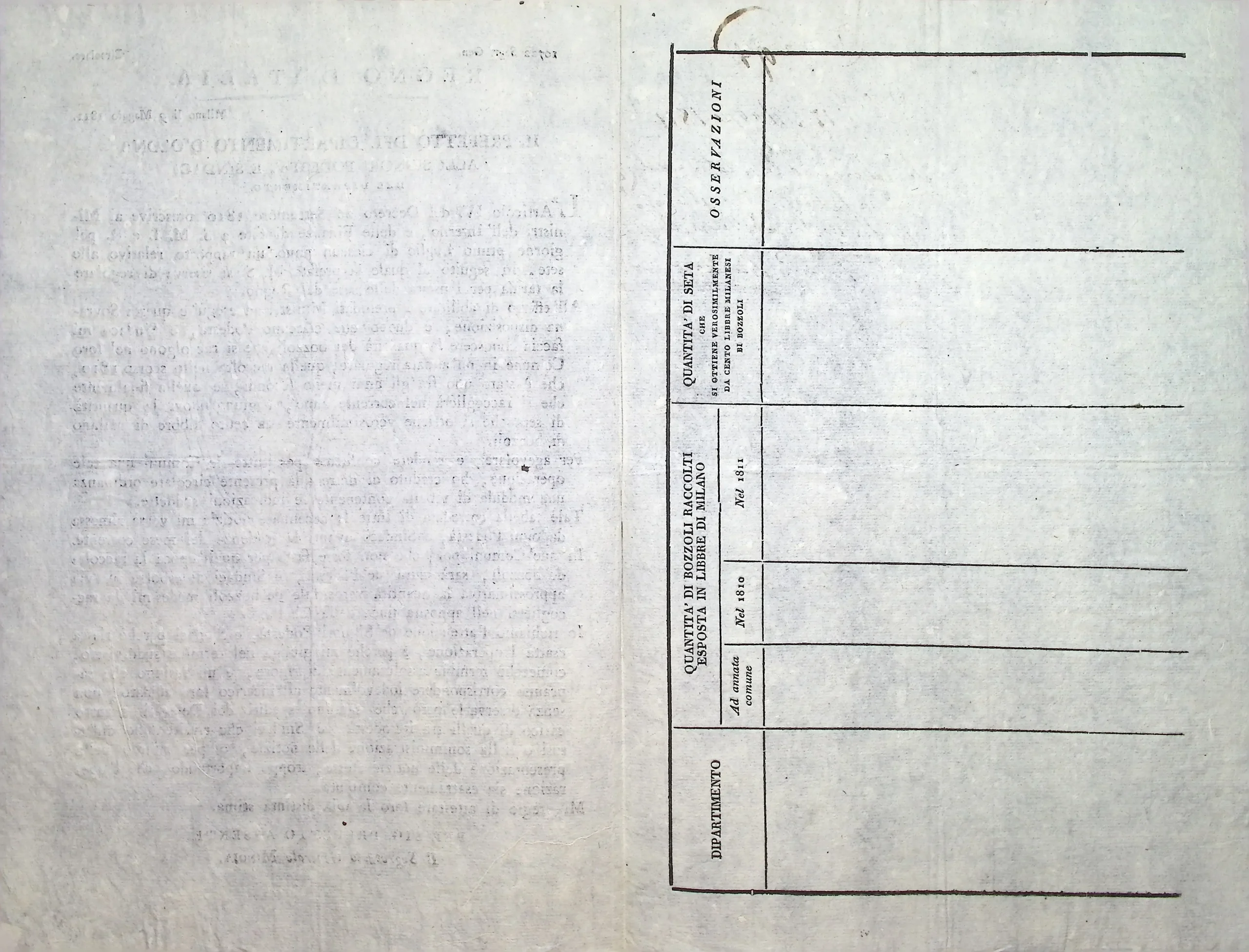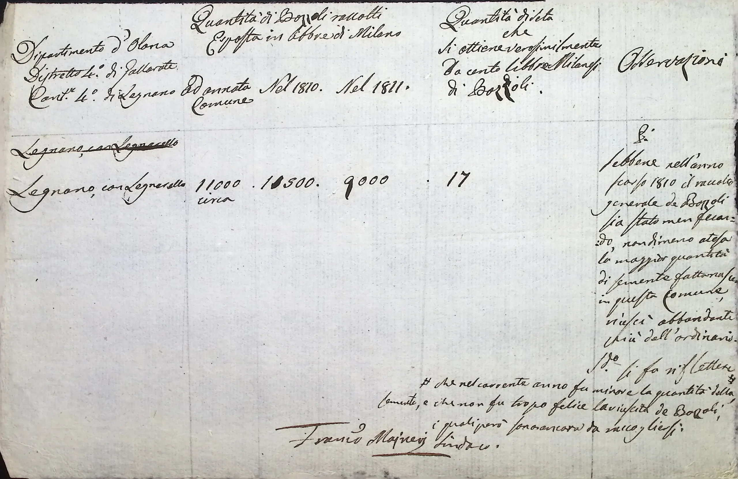 Richiesta di informazioni sulla produzione di bozzoli in territorio di Legnano