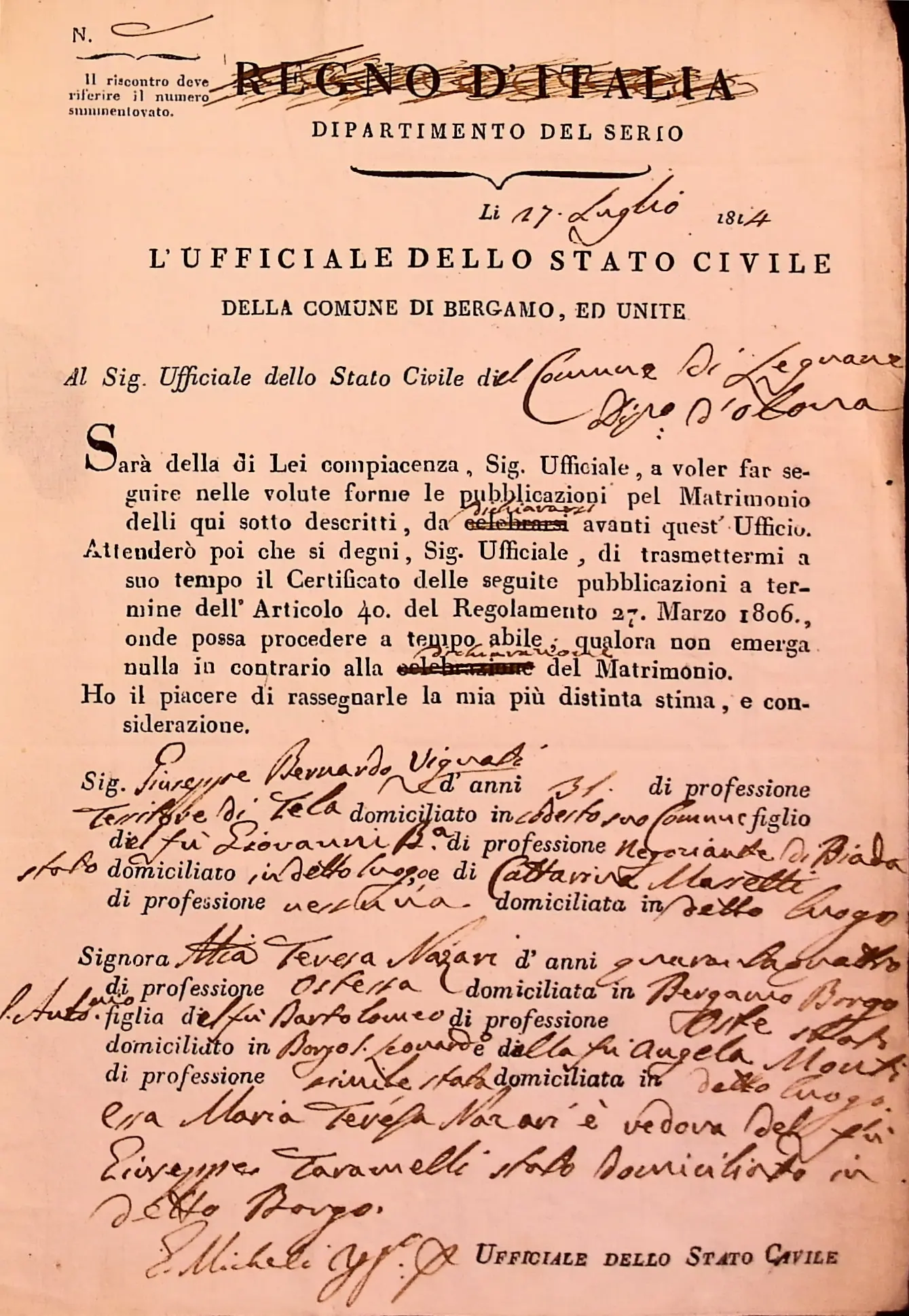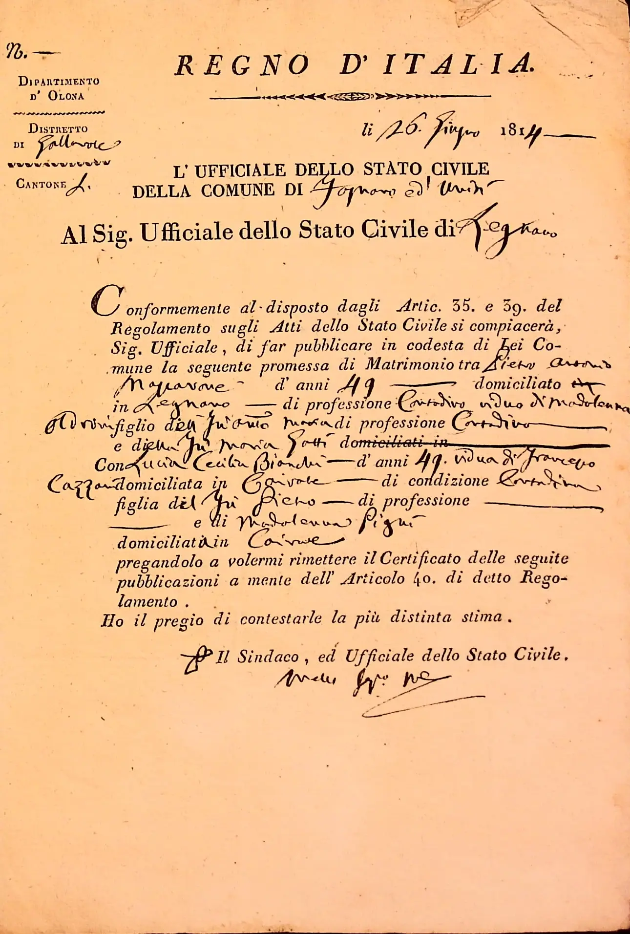 Richiesta di pubblicazioni matrimoniali