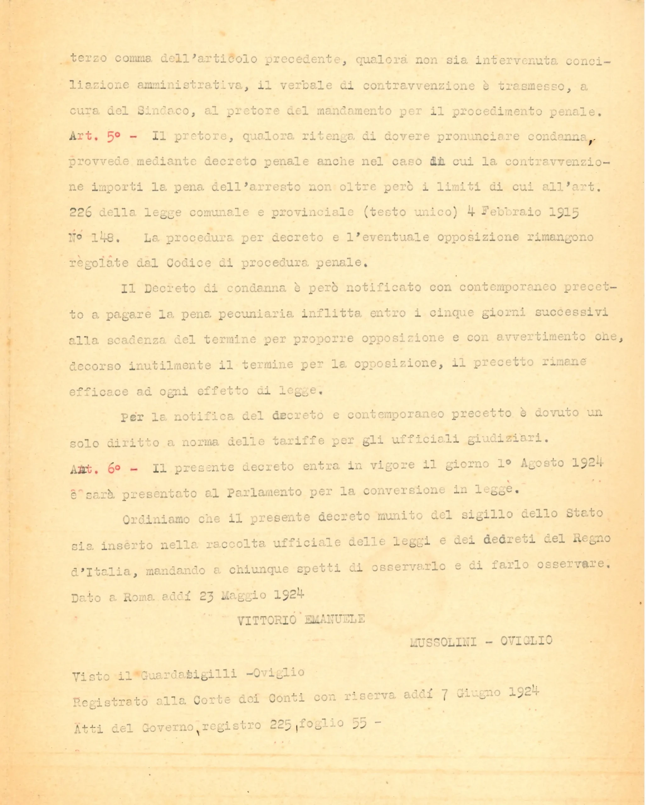 Trascrizione del Regio Decreto 23 maggio 1924, n. 867.