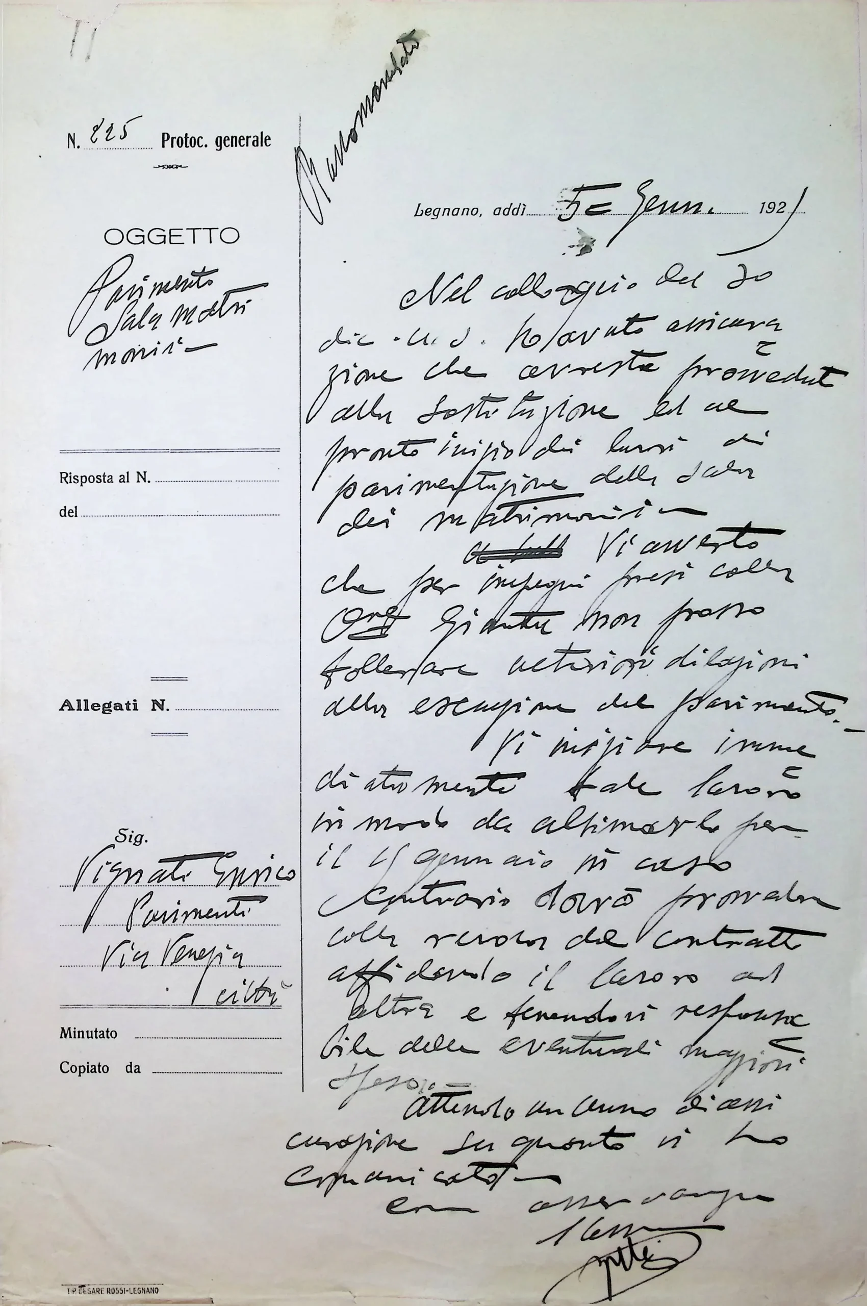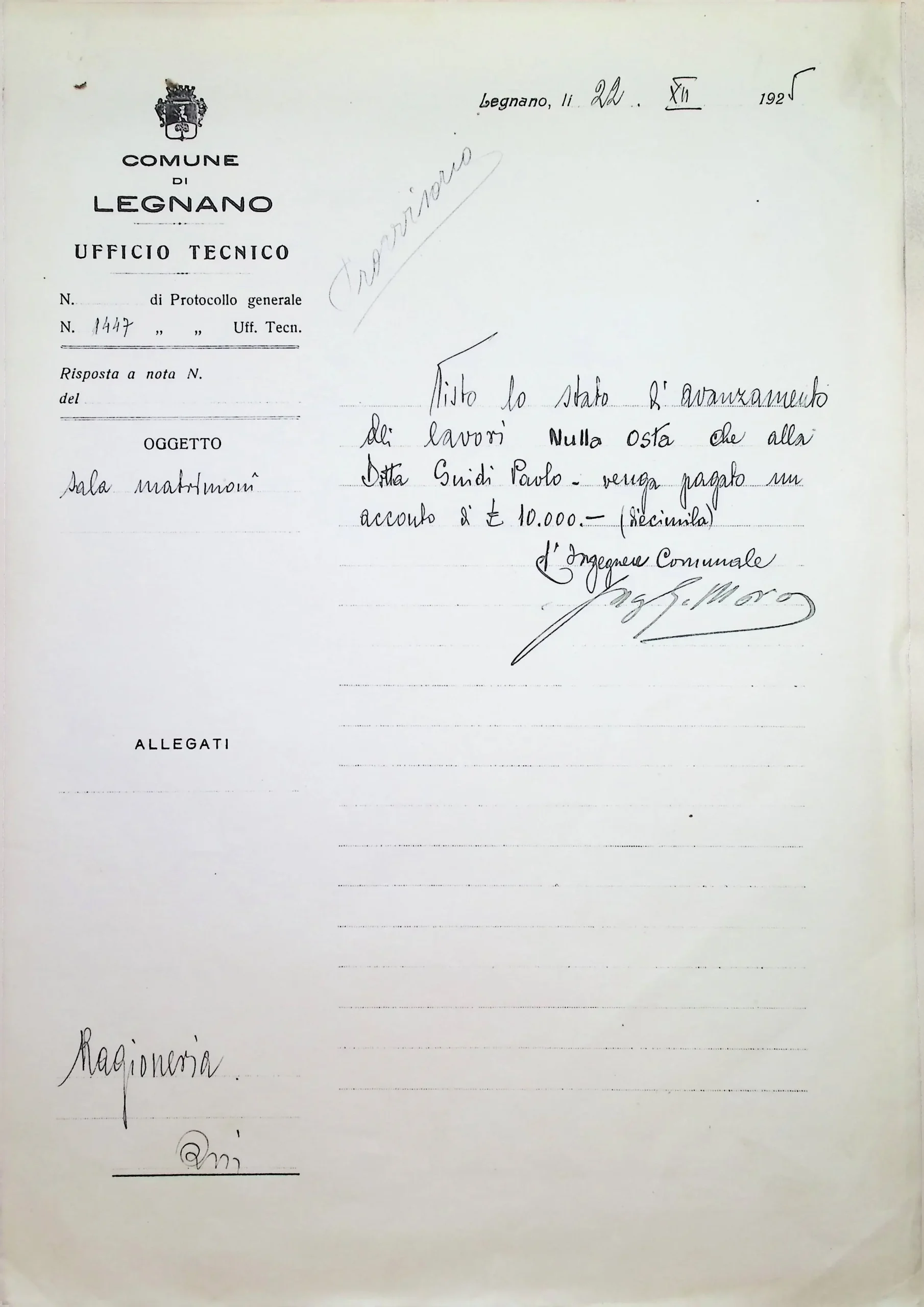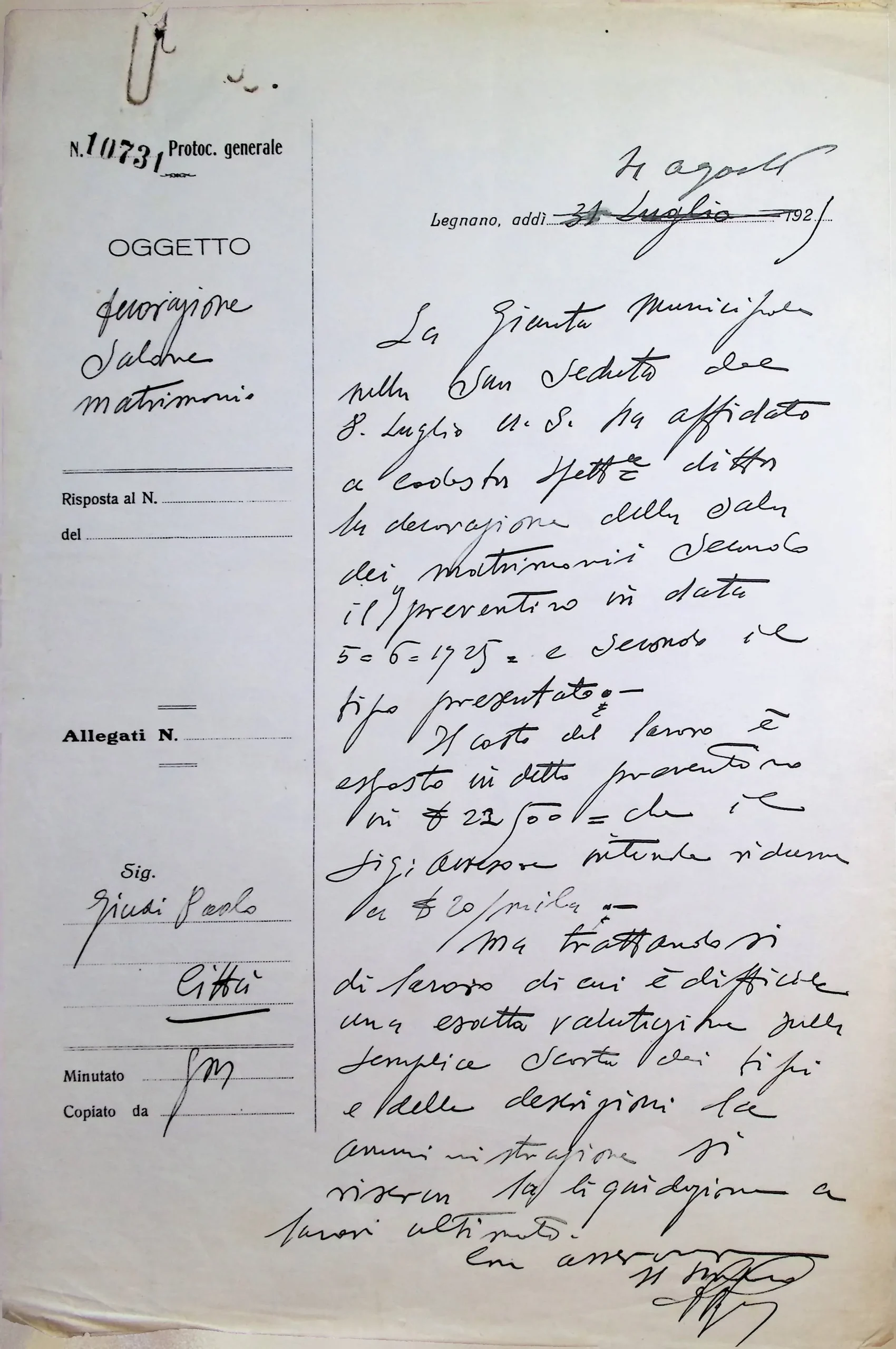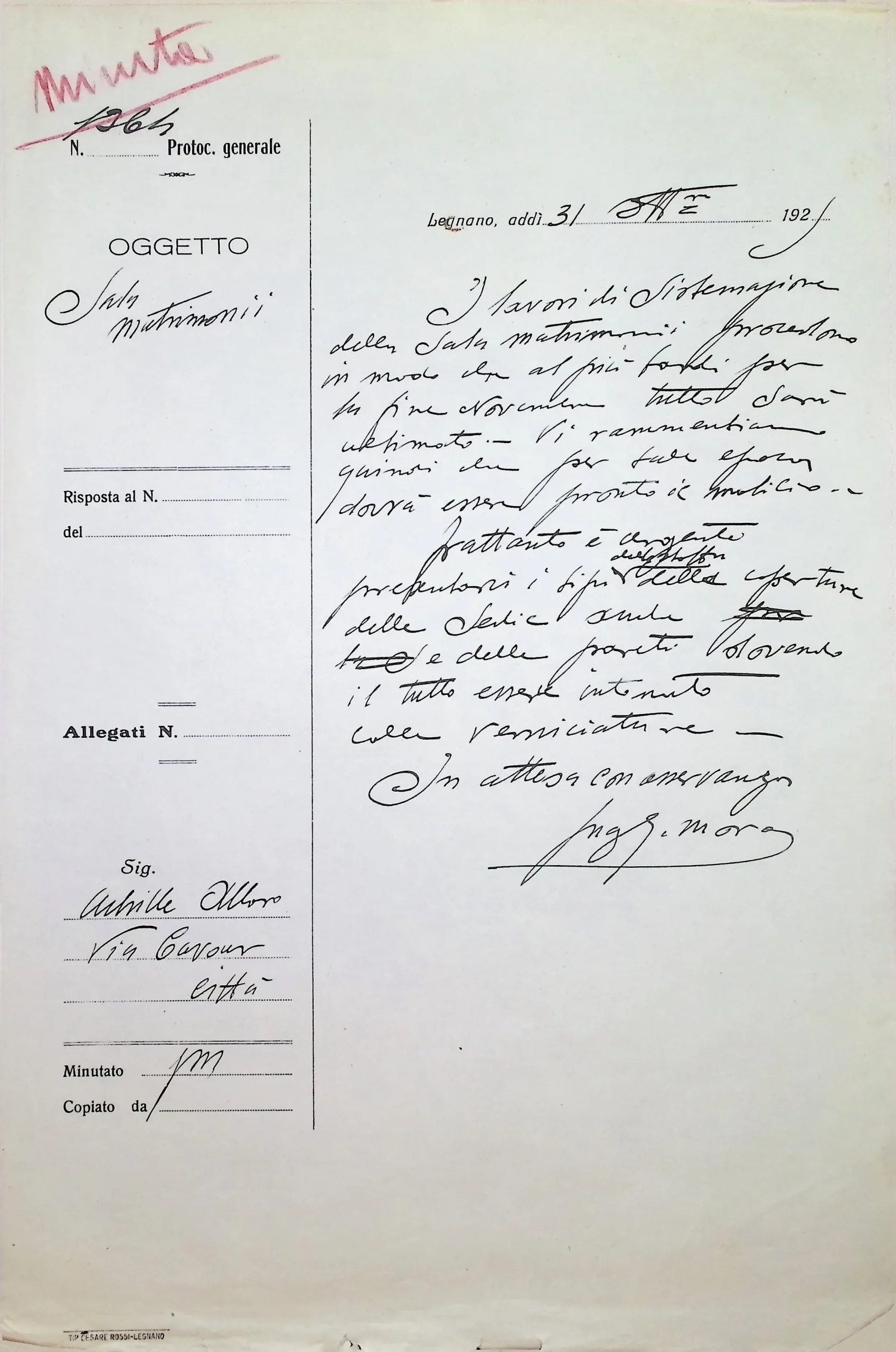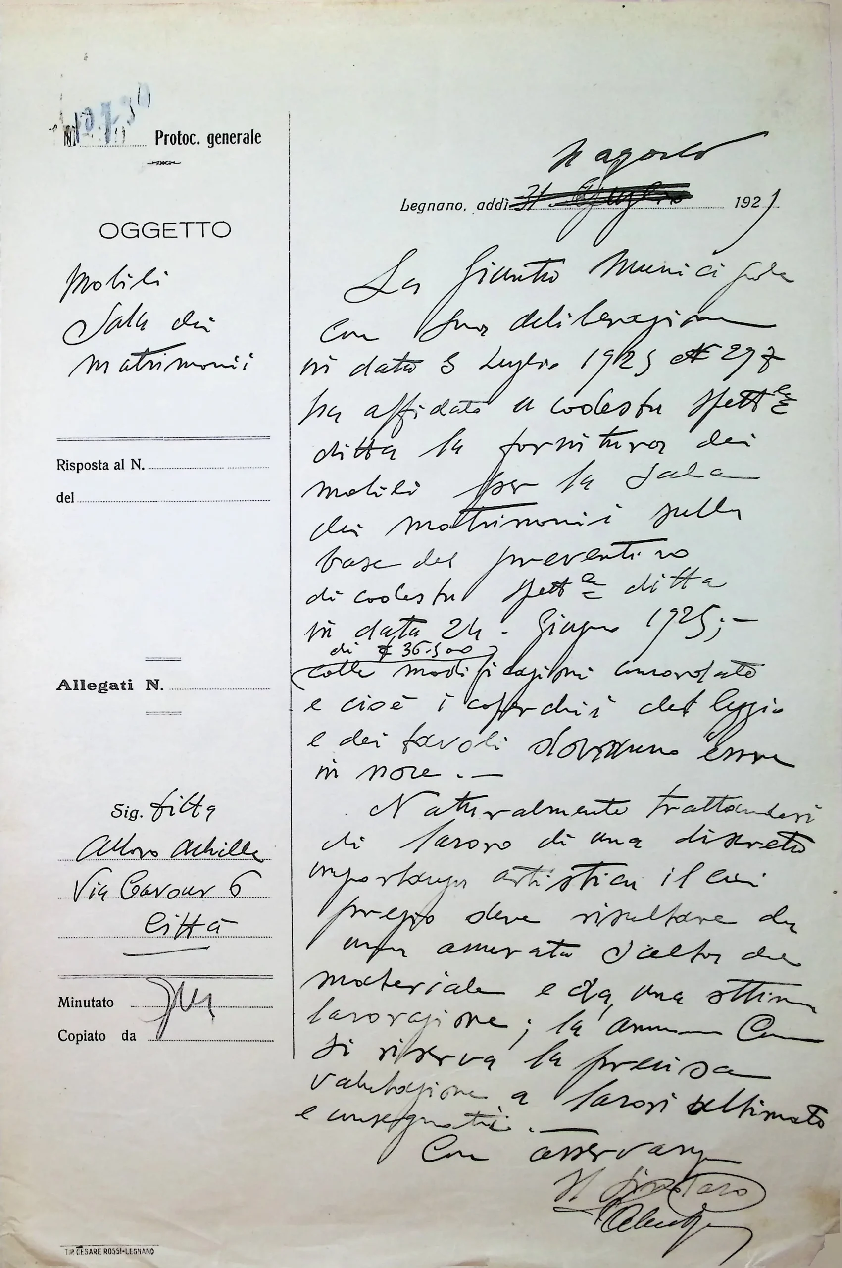 | Note dell'archivista | Si vedano anche gli allegati alla deliberazione CC 102/1924. |
