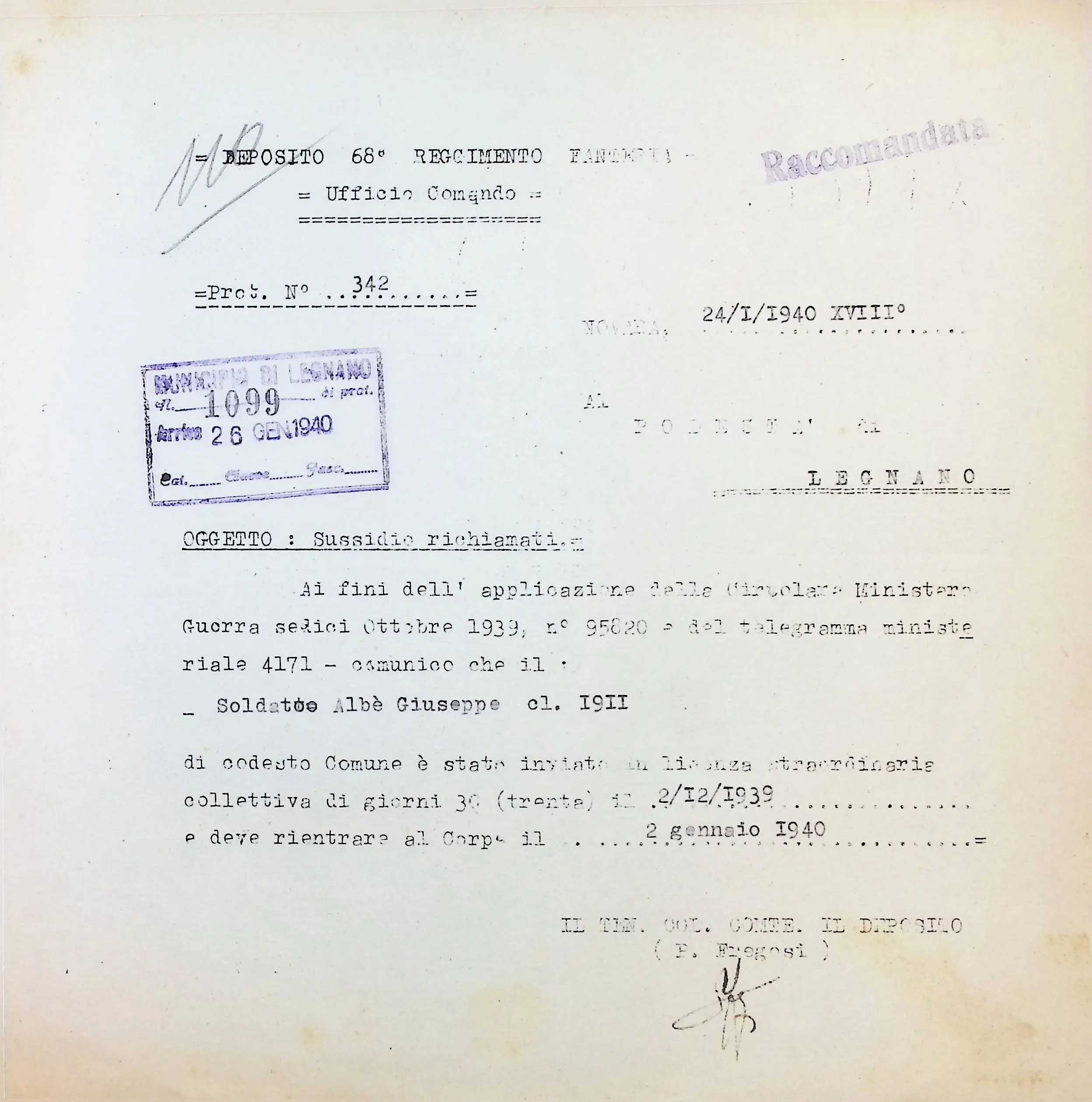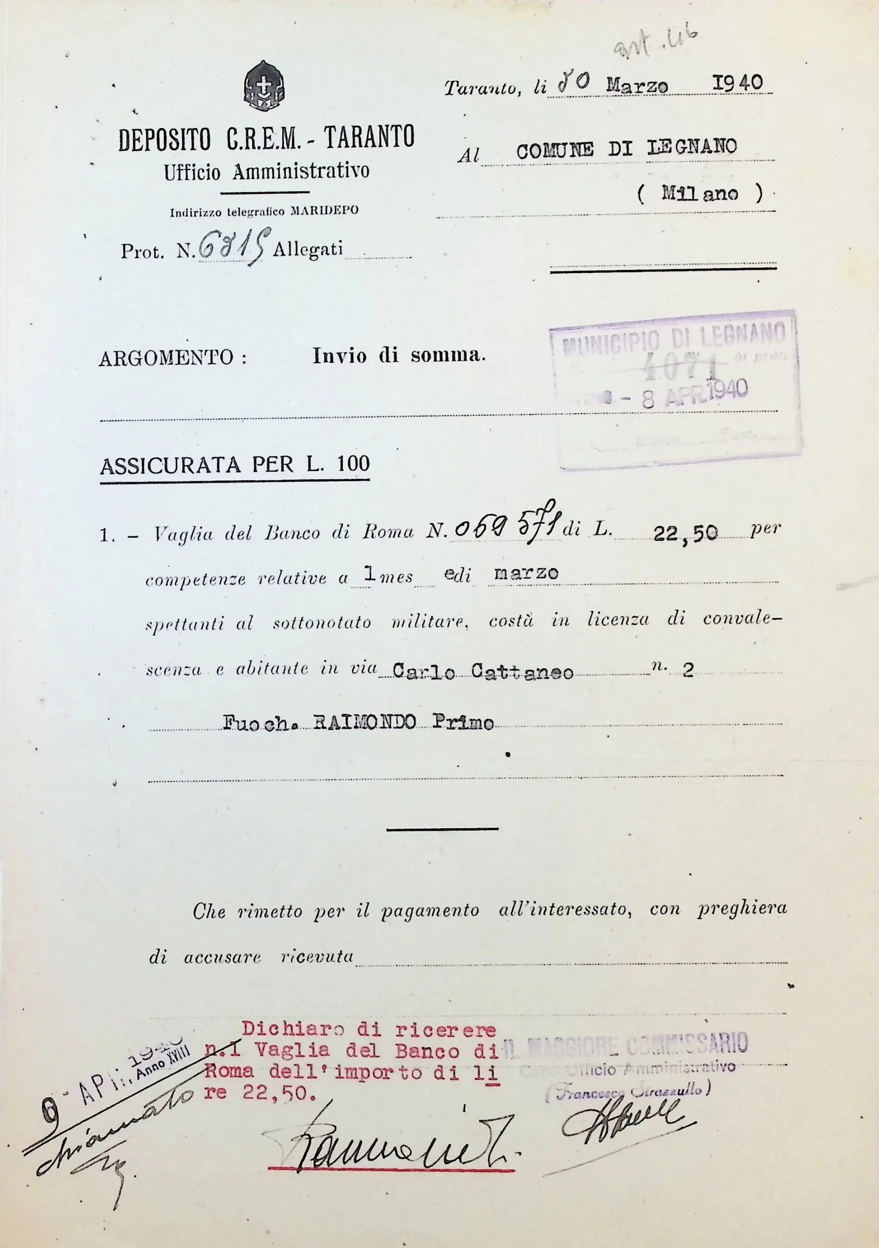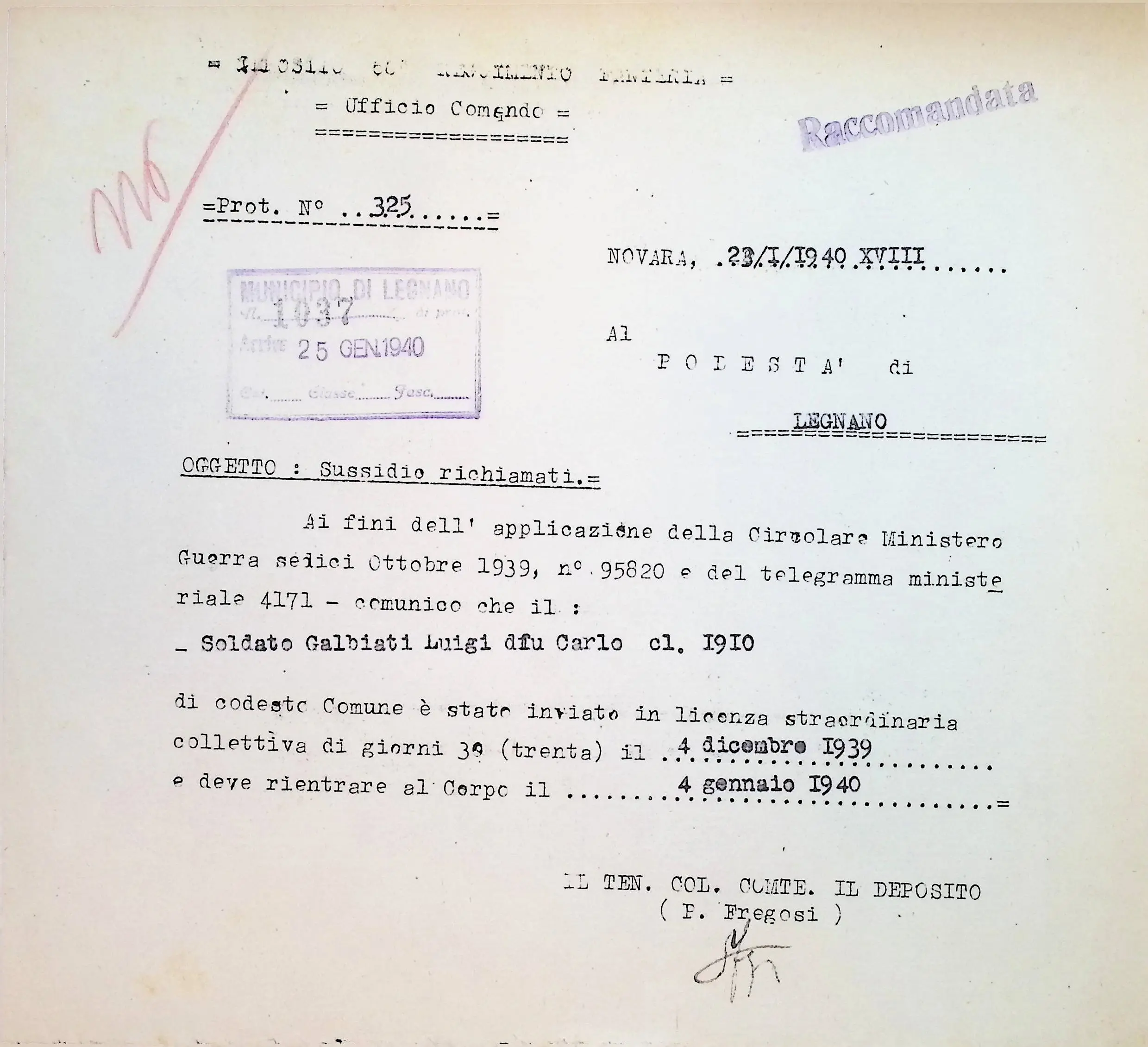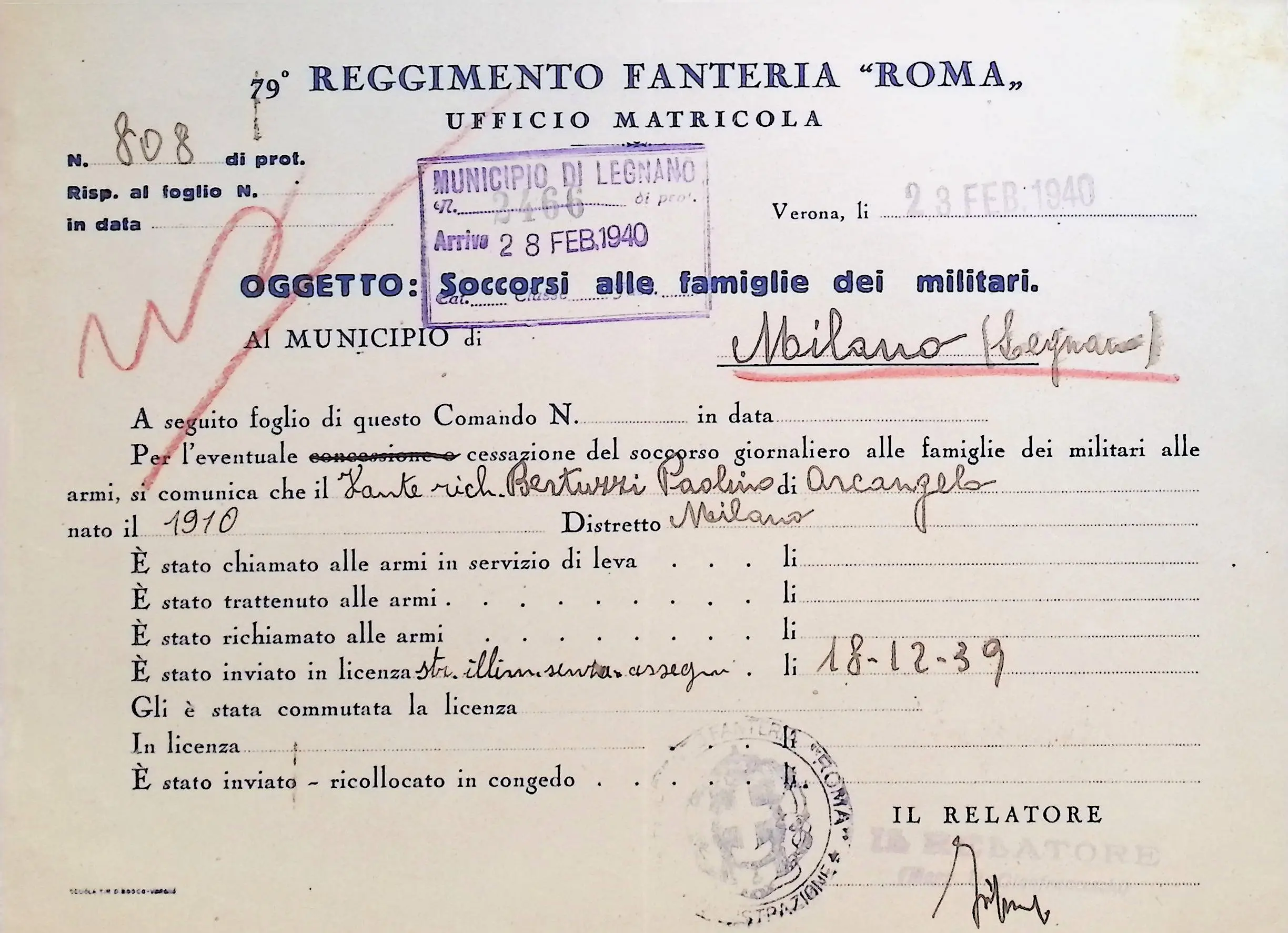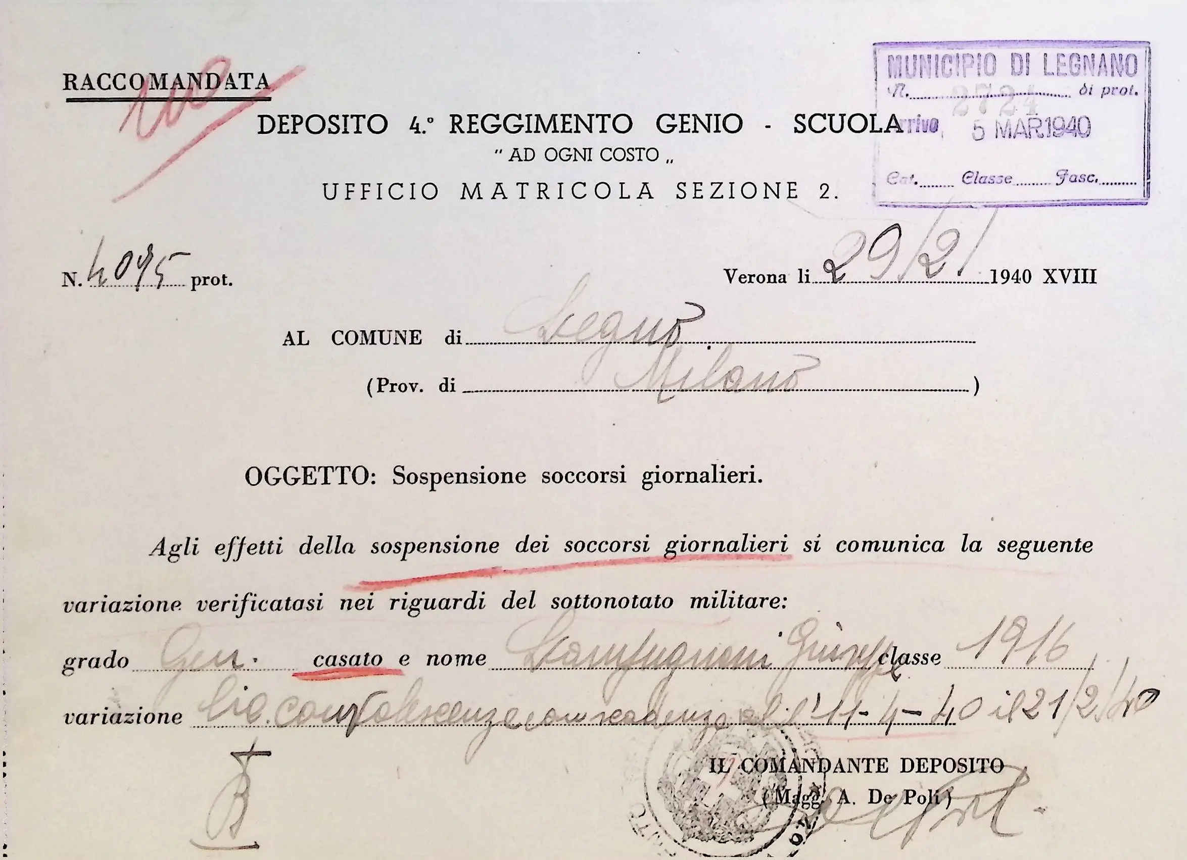 Sussidi ai militari e soccorsi giornalieri alle loro famiglie