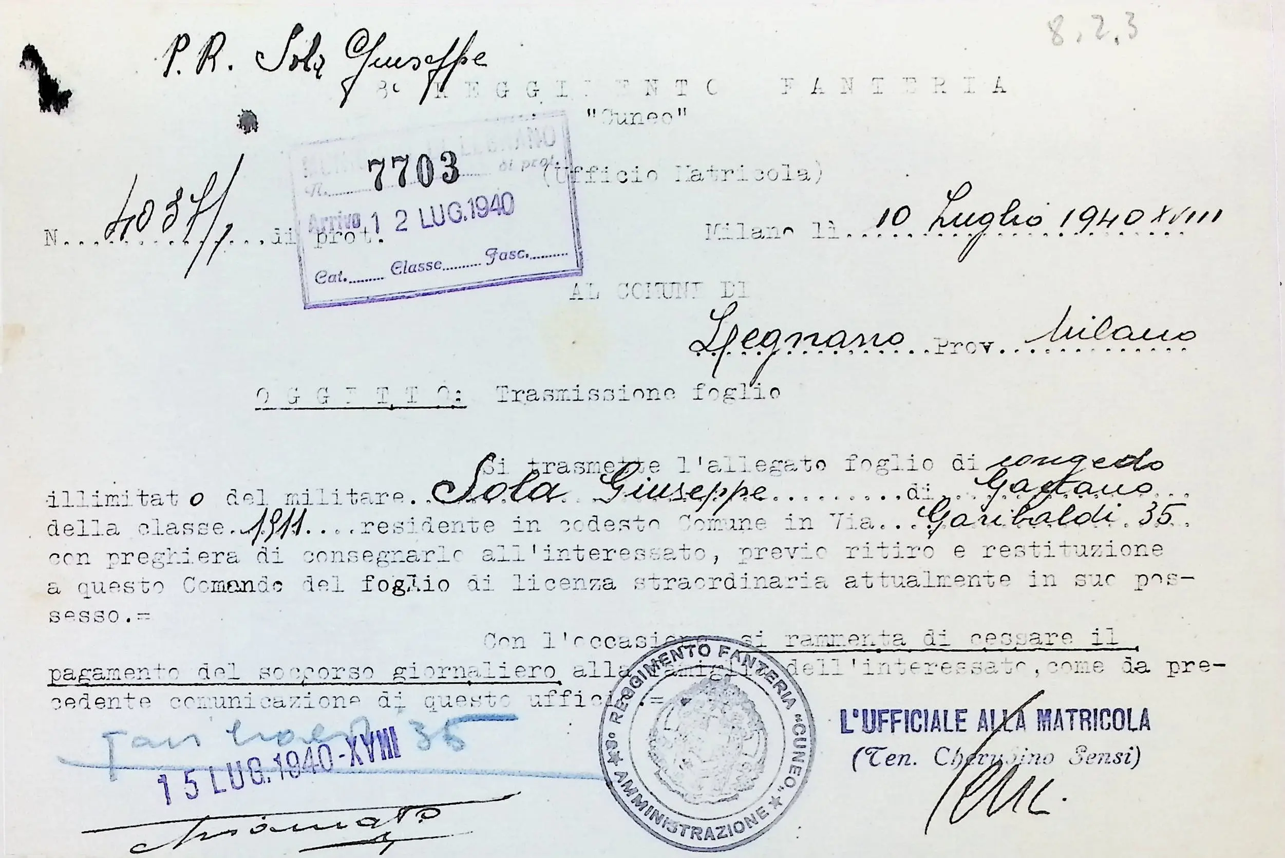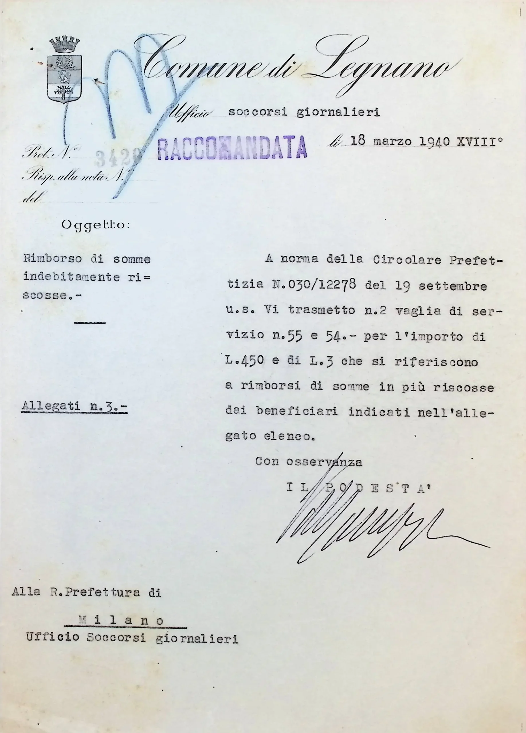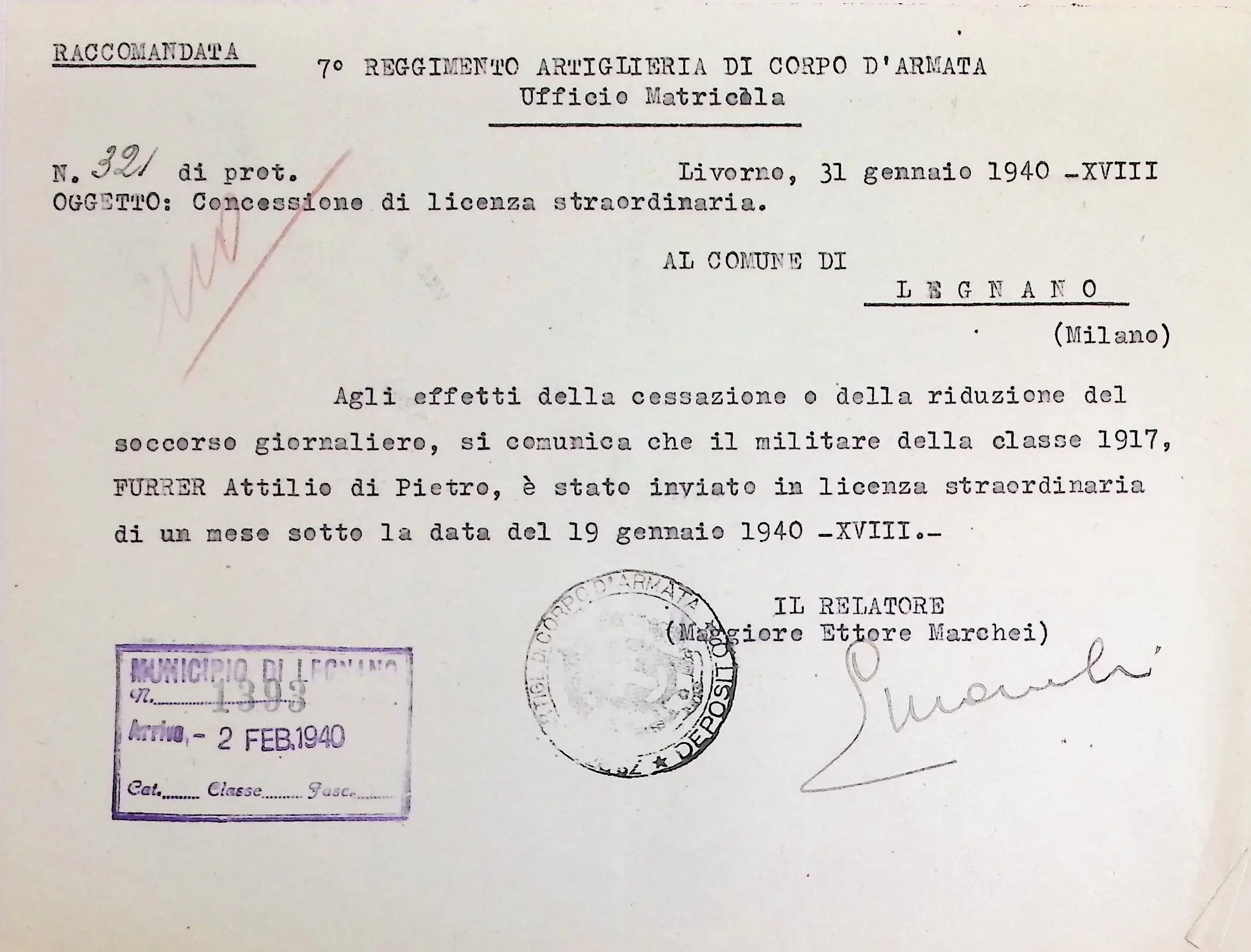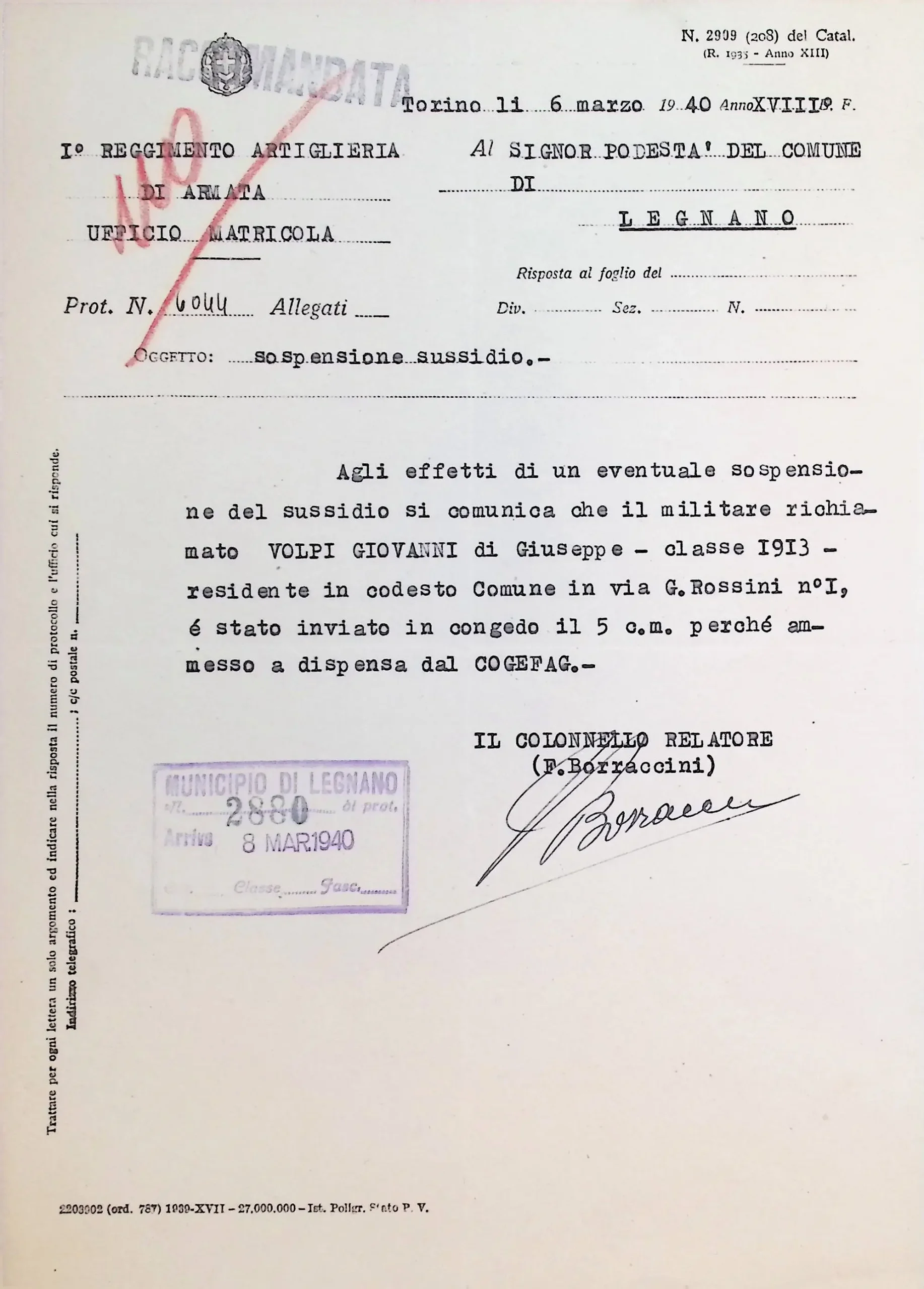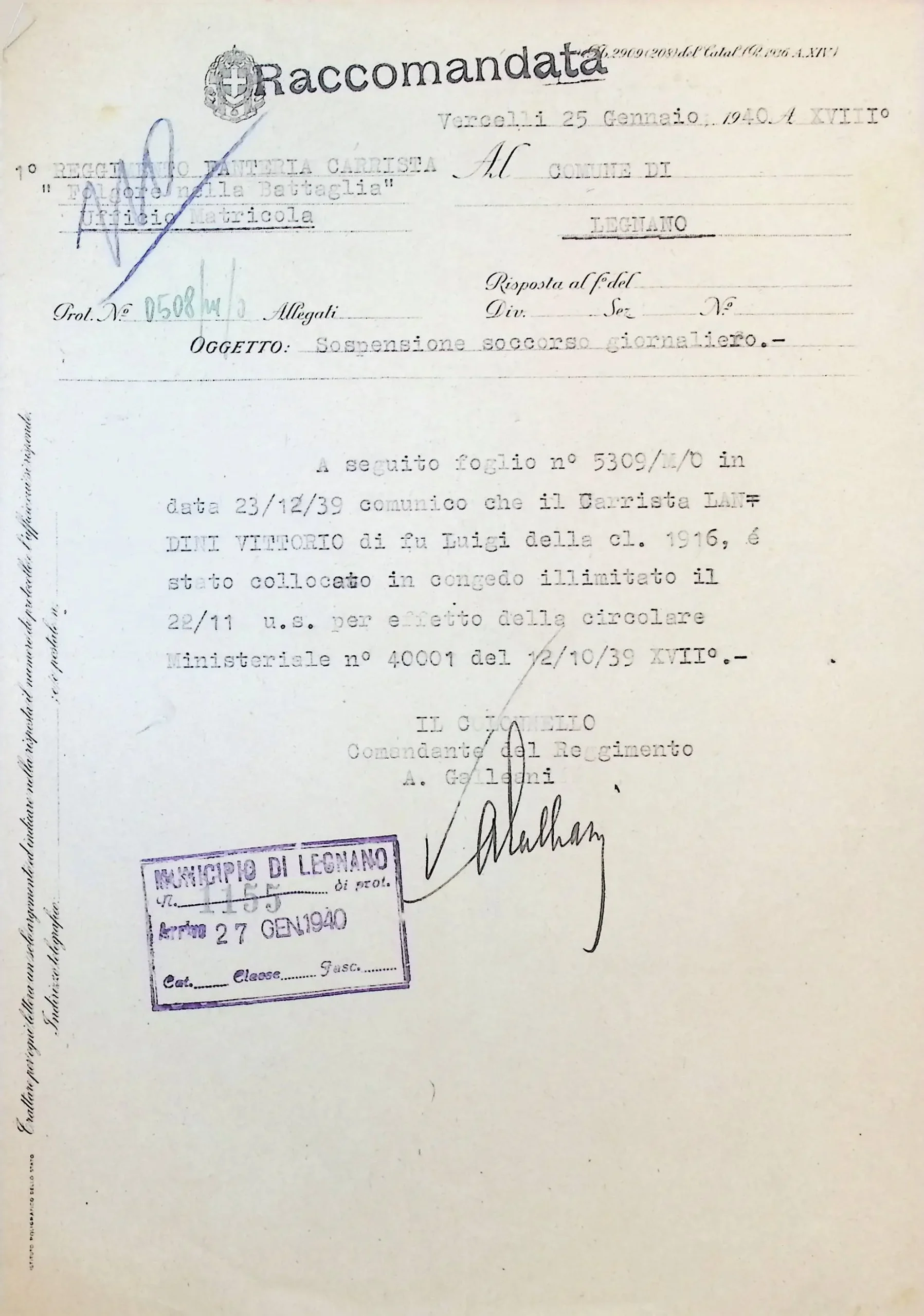 Sussidi ai militari e soccorsi giornalieri alle loro famiglie