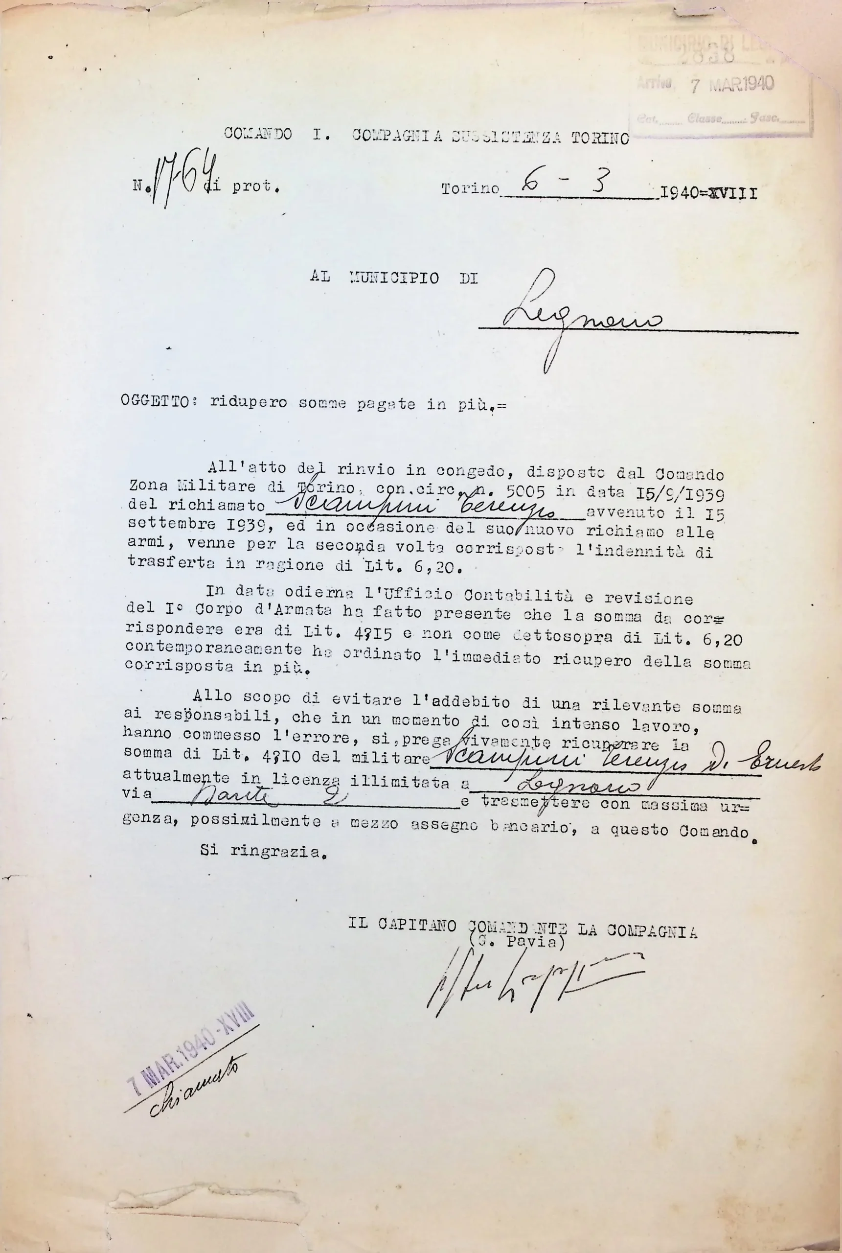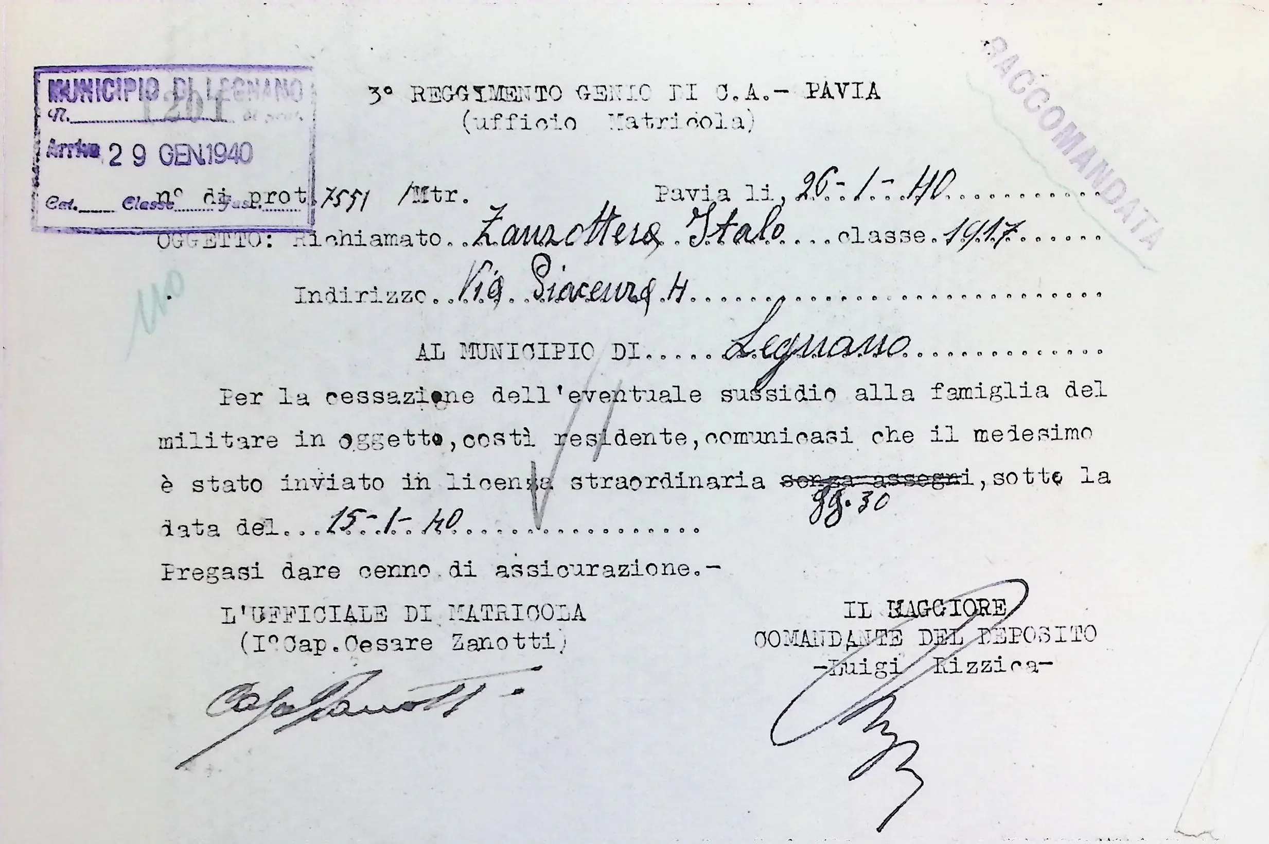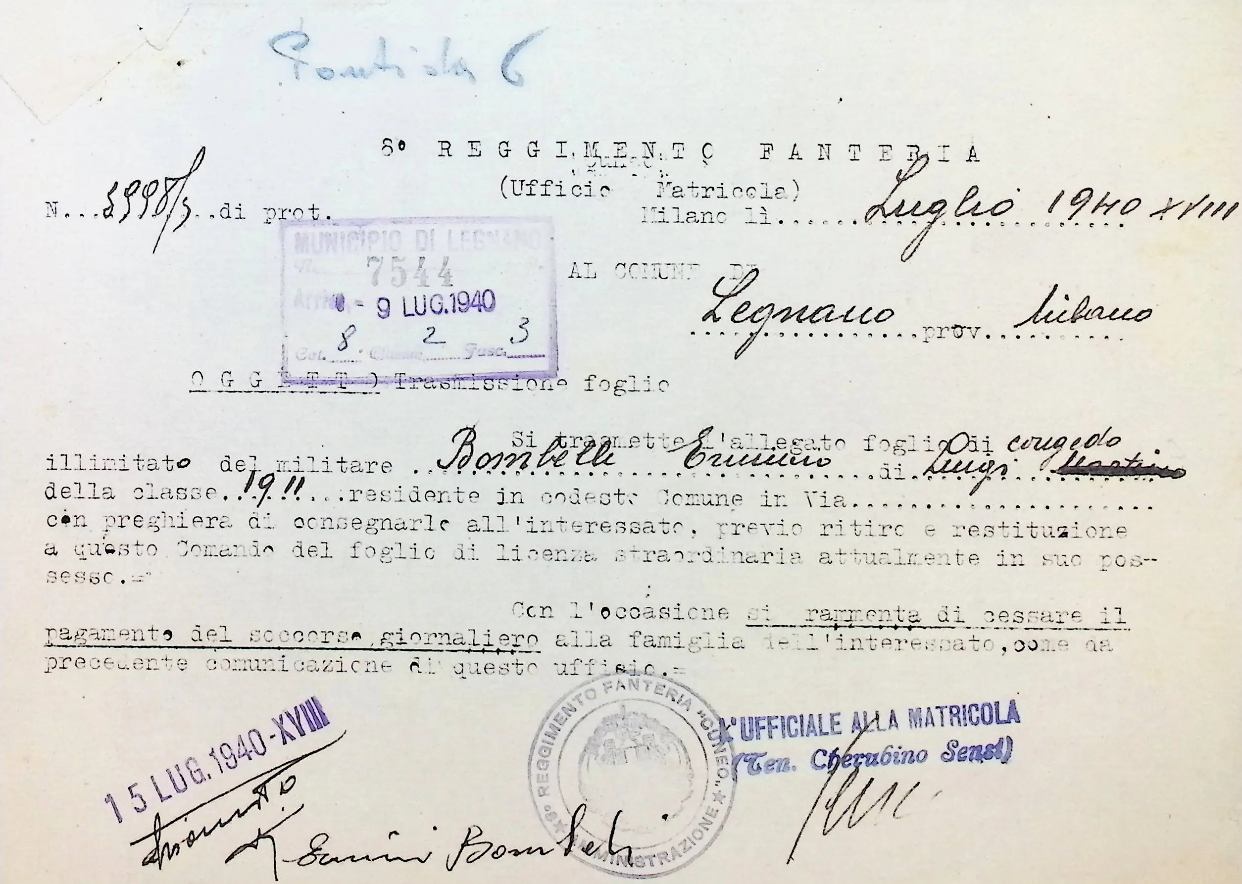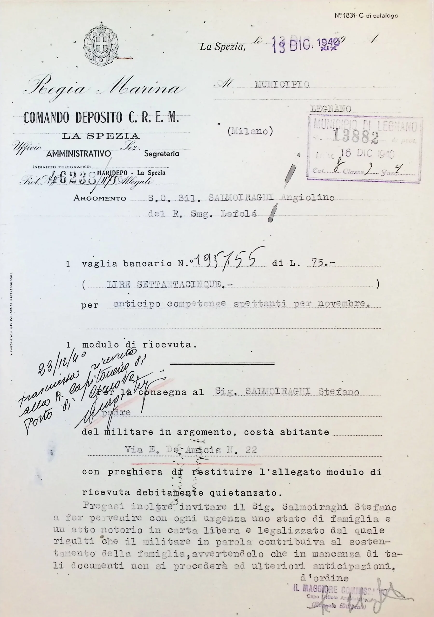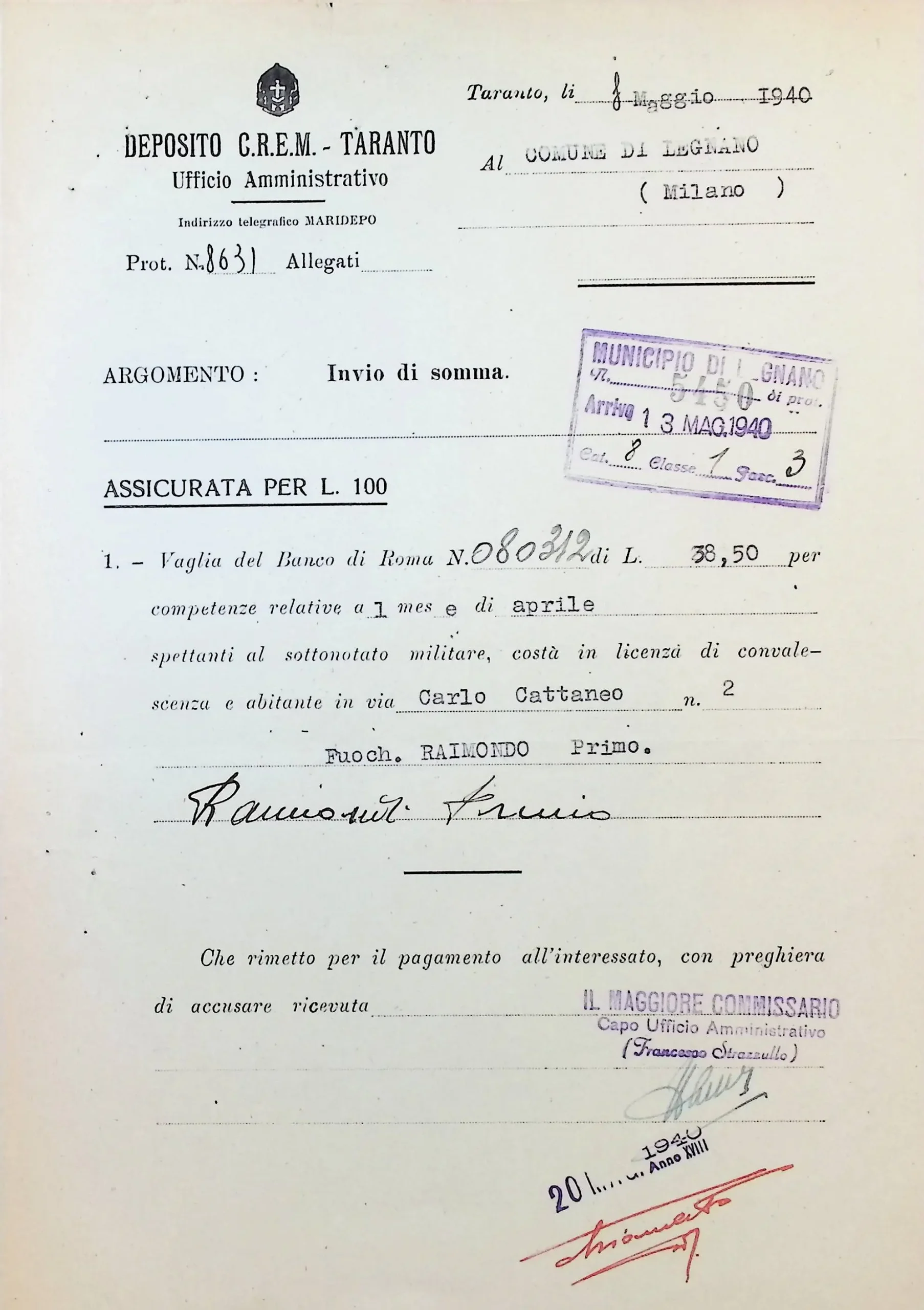 Sussidi ai militari e soccorsi giornalieri alle loro famiglie
