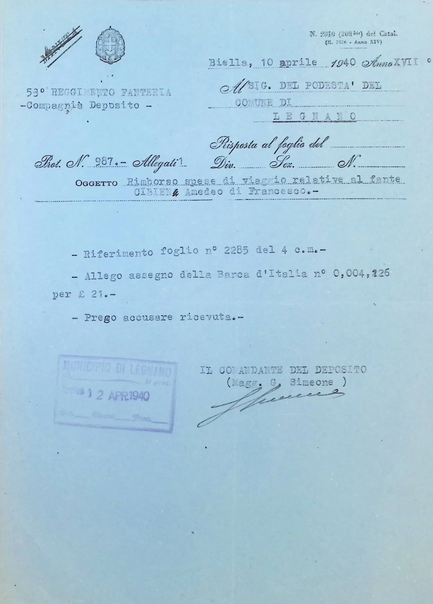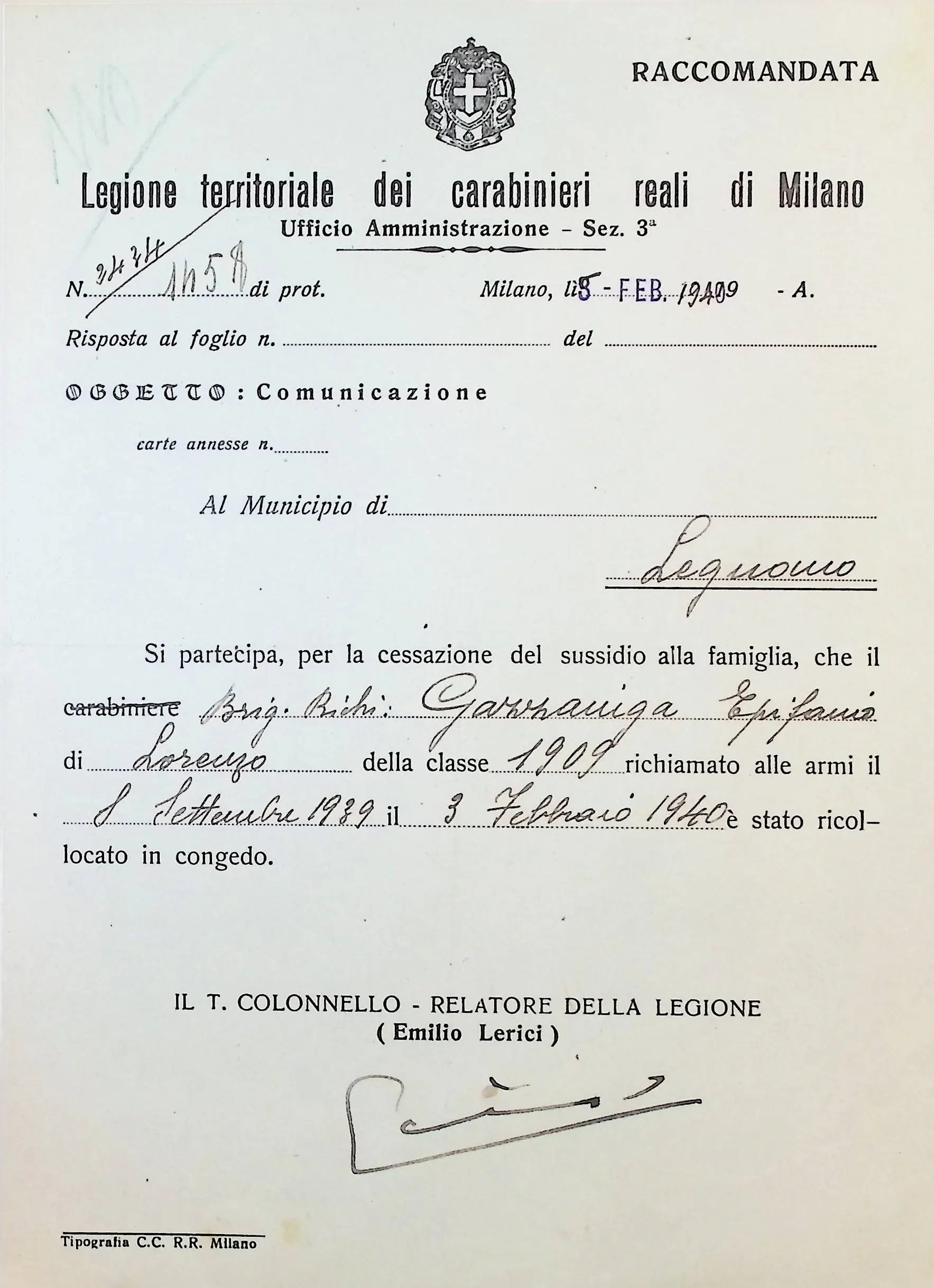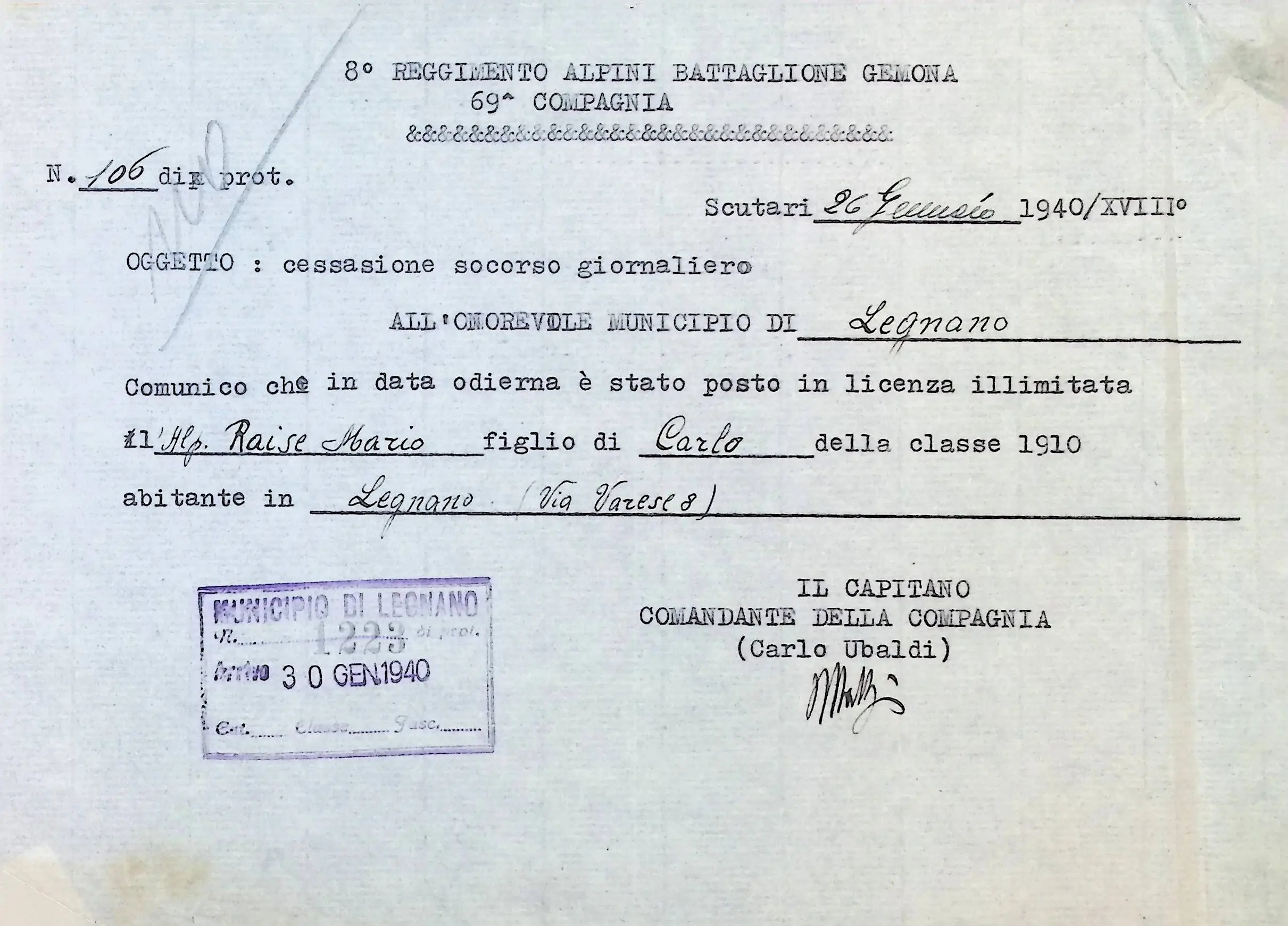 | Classificazione | VIII.2 - Servizi militari e assistenza, associazioni |