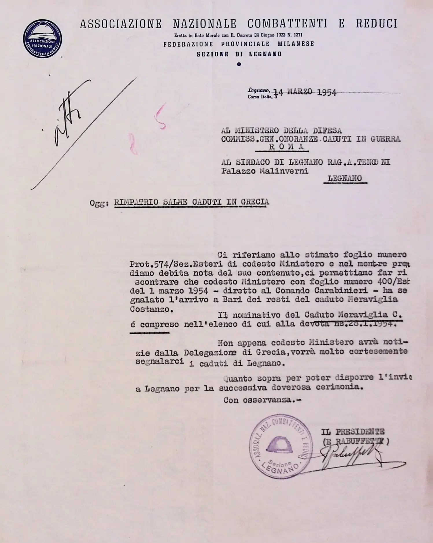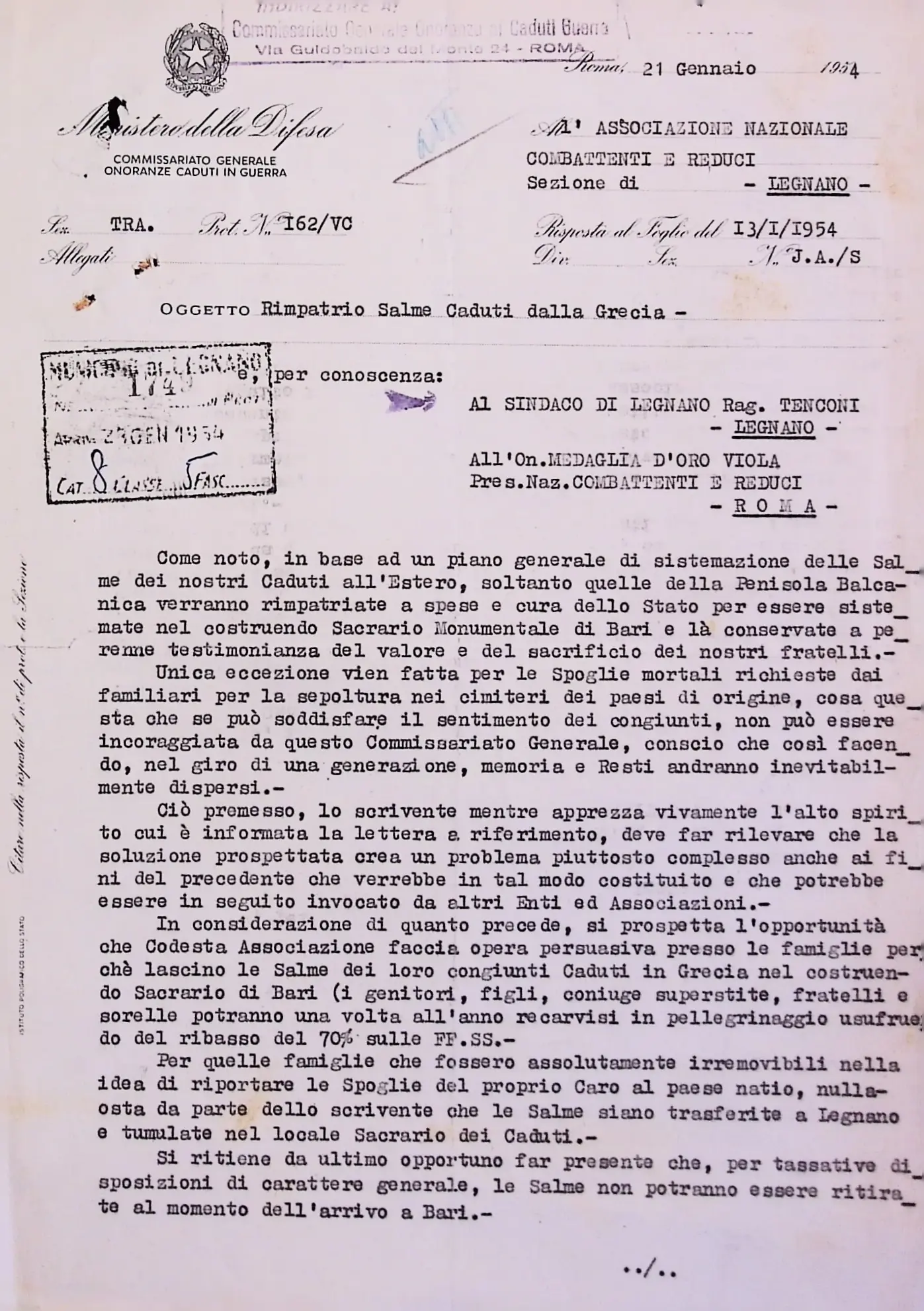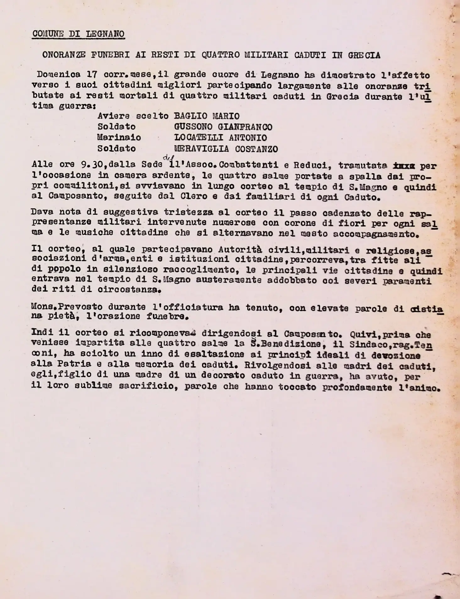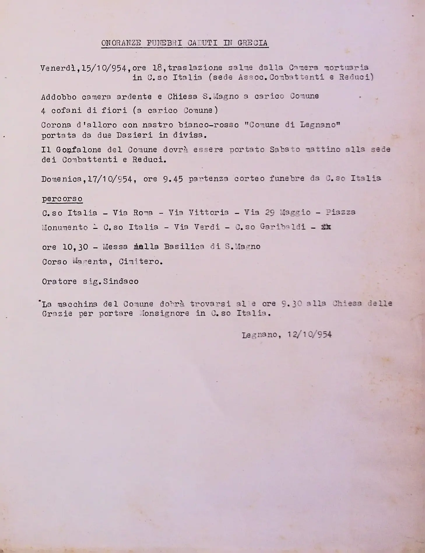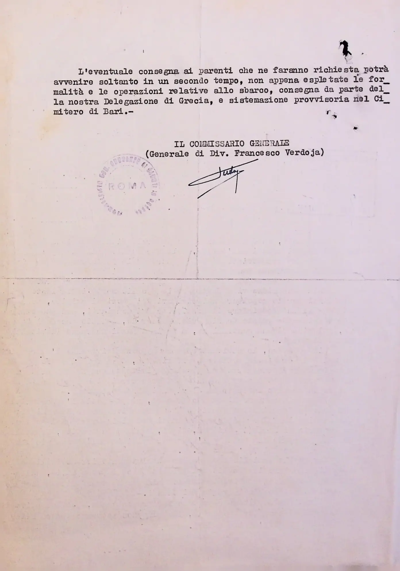 Traslazione e onoranze alle salme dei militari caduti in Grecia