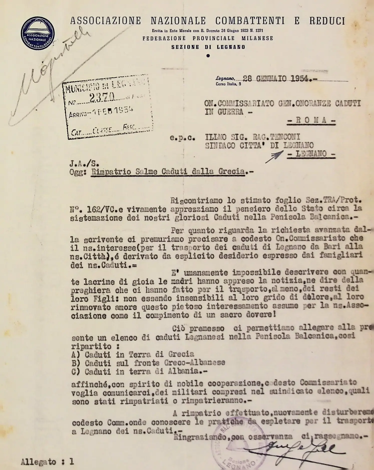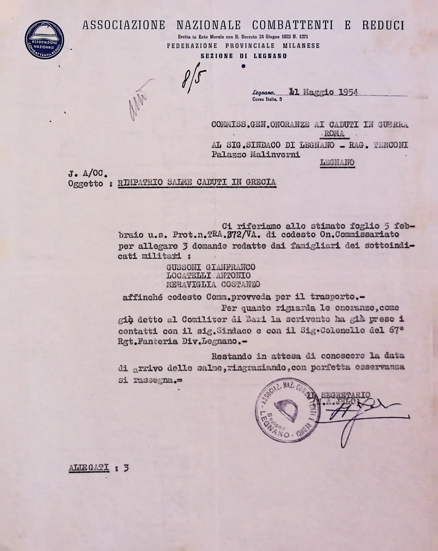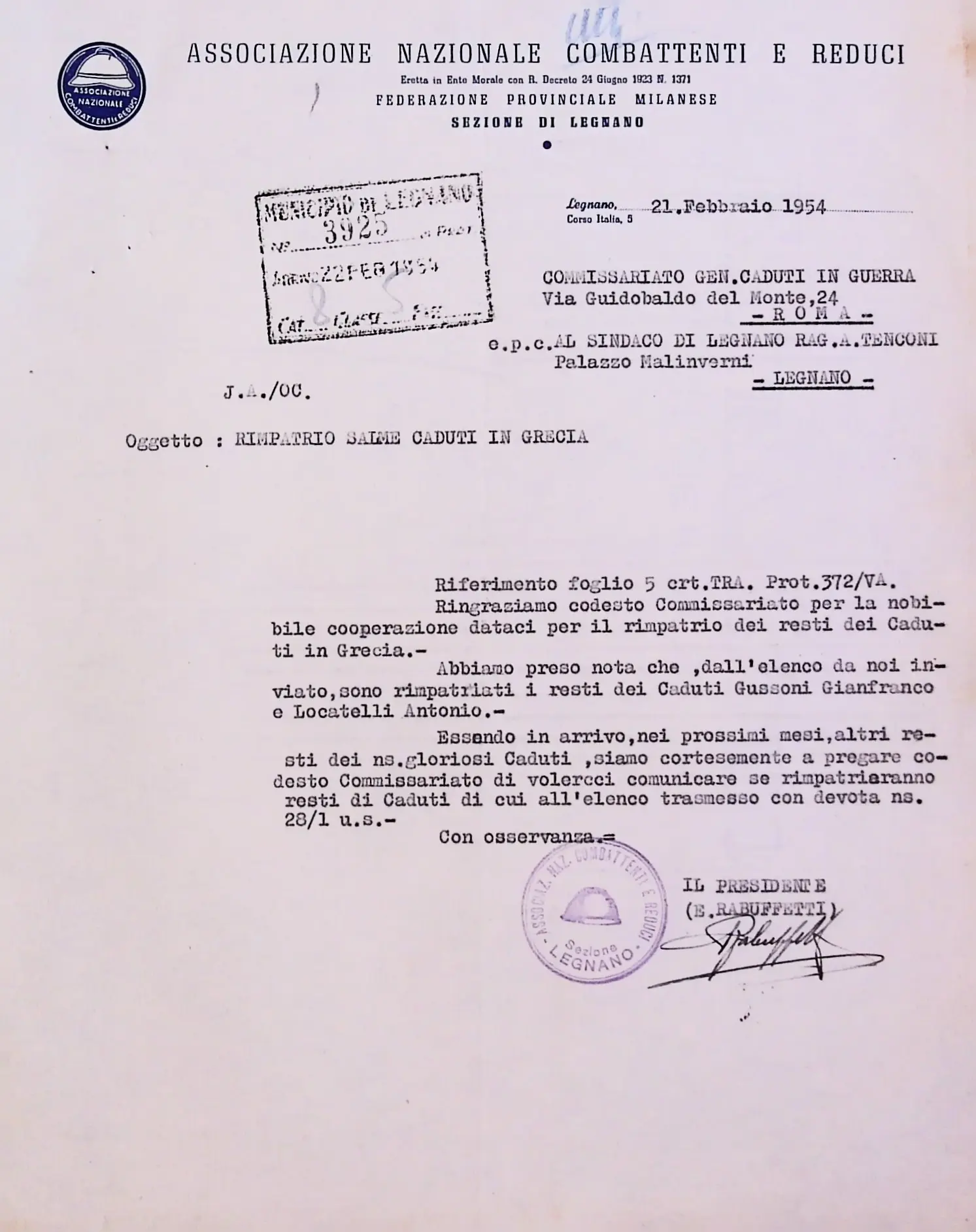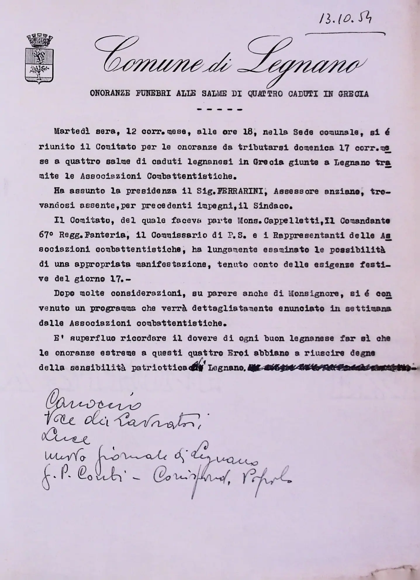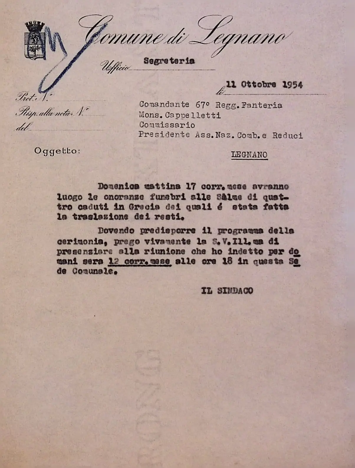 Traslazione e onoranze alle salme dei militari caduti in Grecia