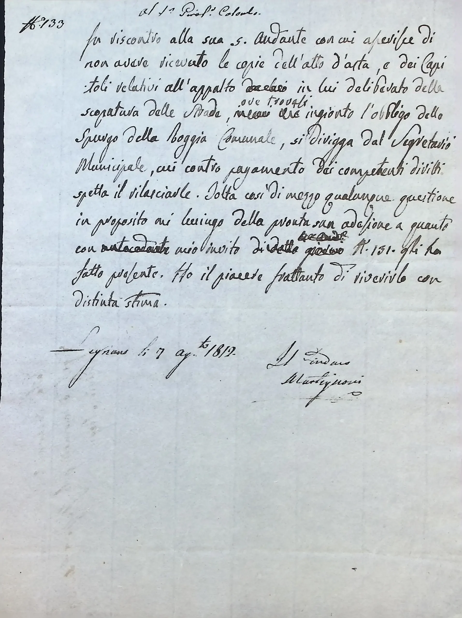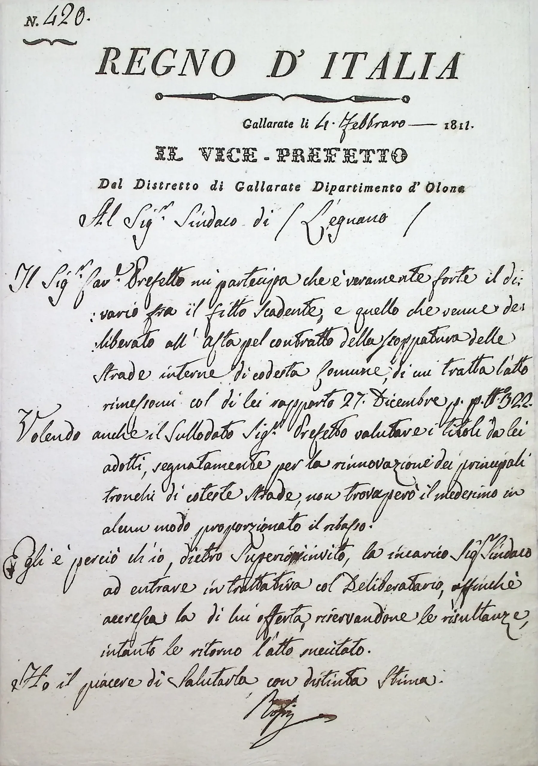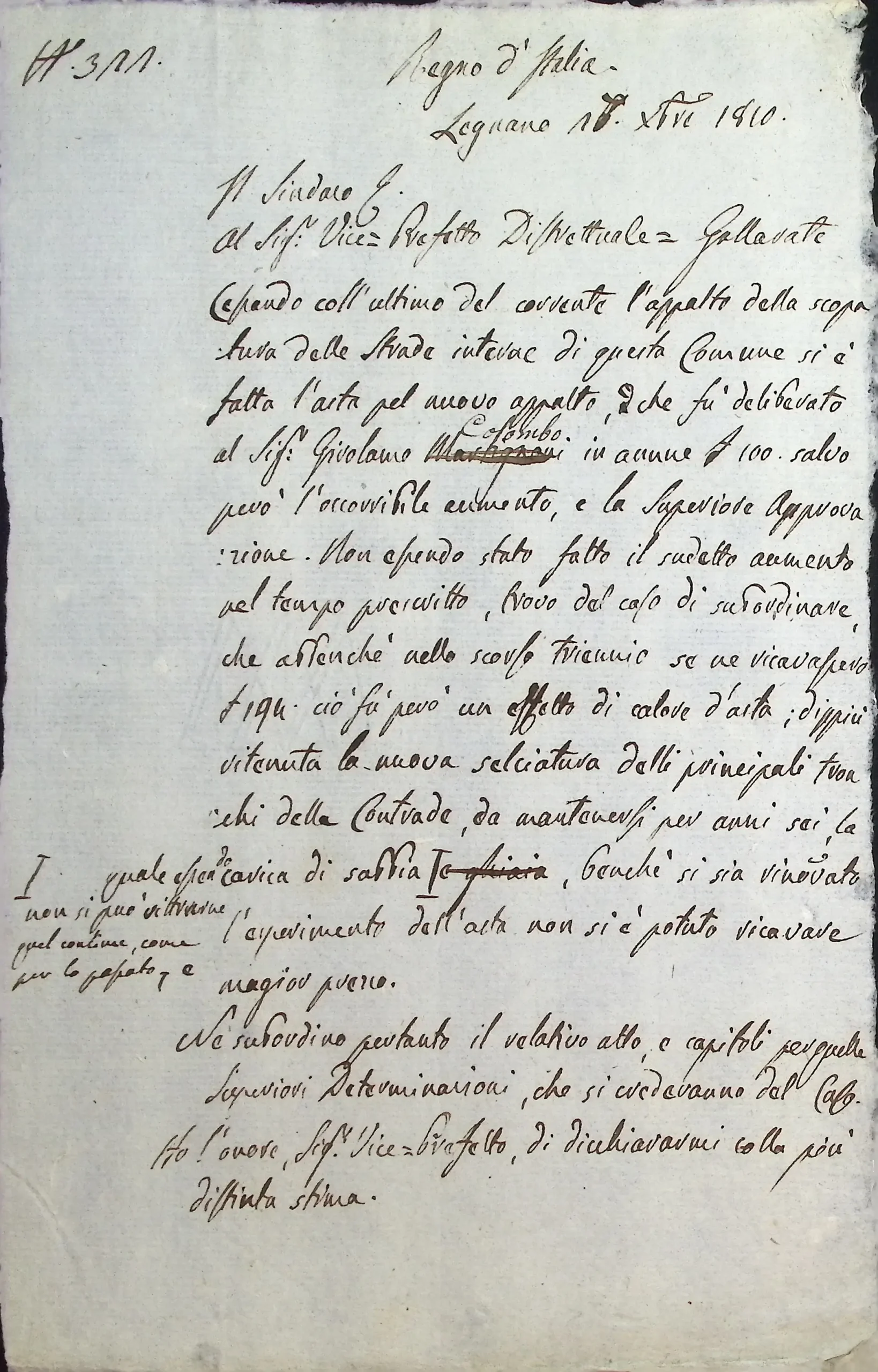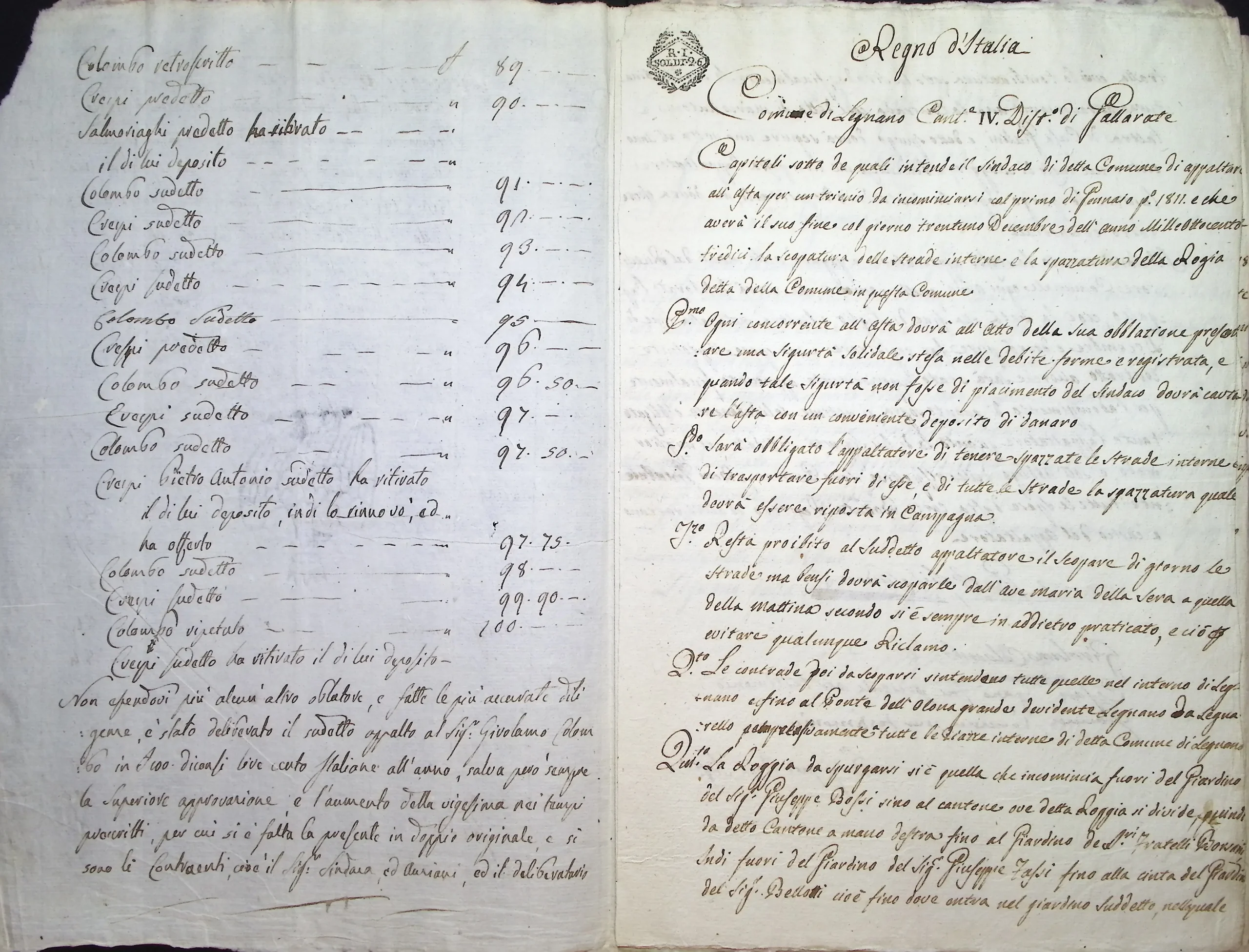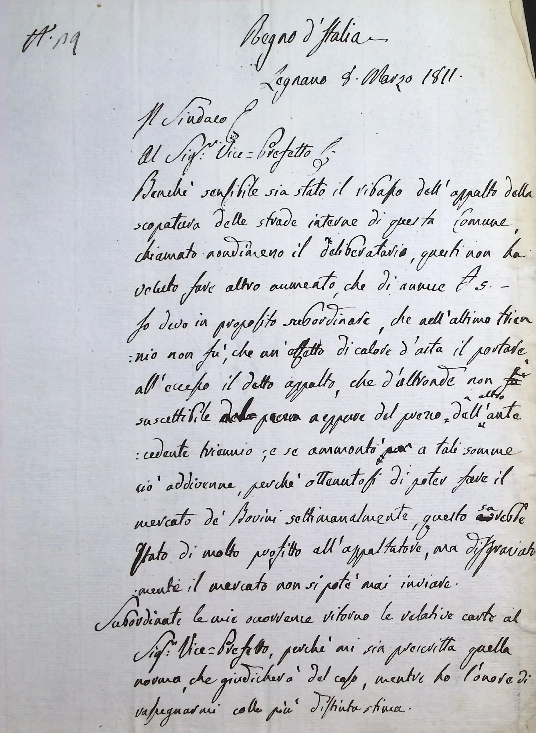 Appalto del servizio di spazzatura delle strade interne del Comune per il triennio 1811 – 1813