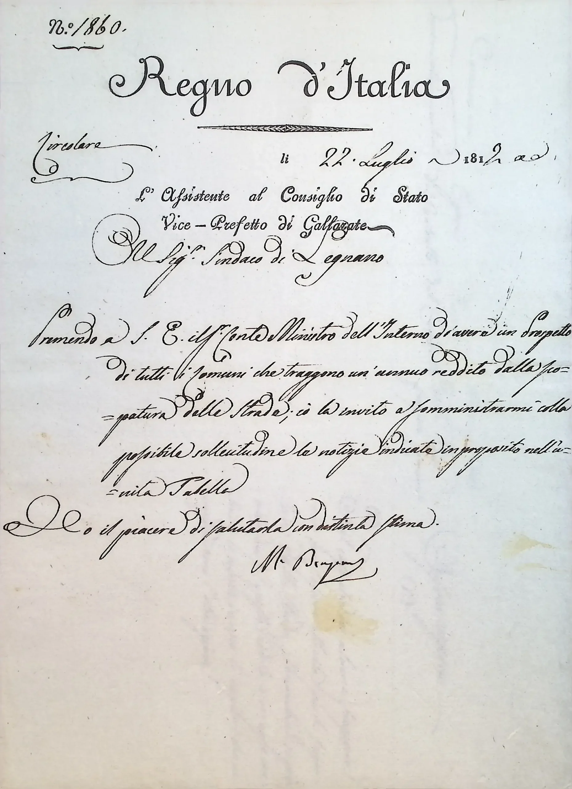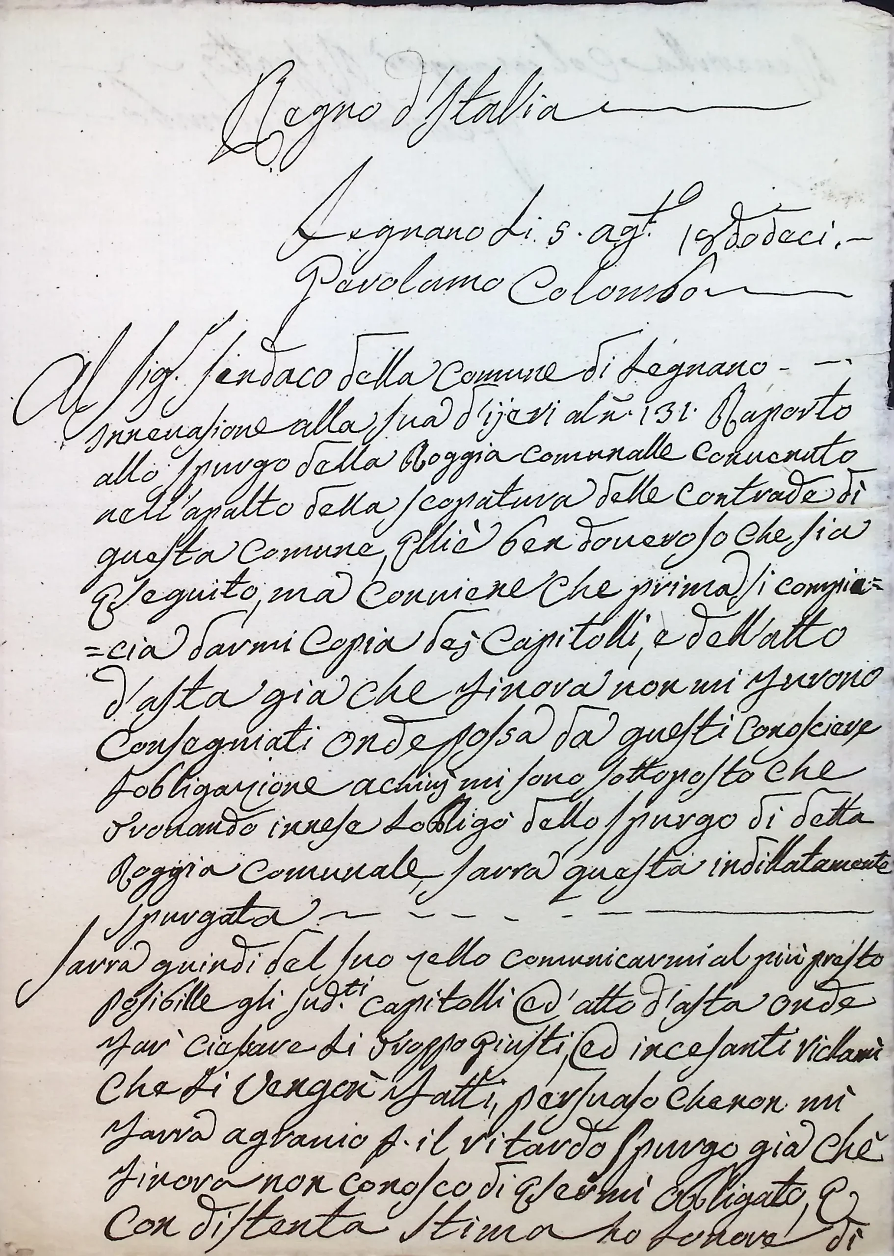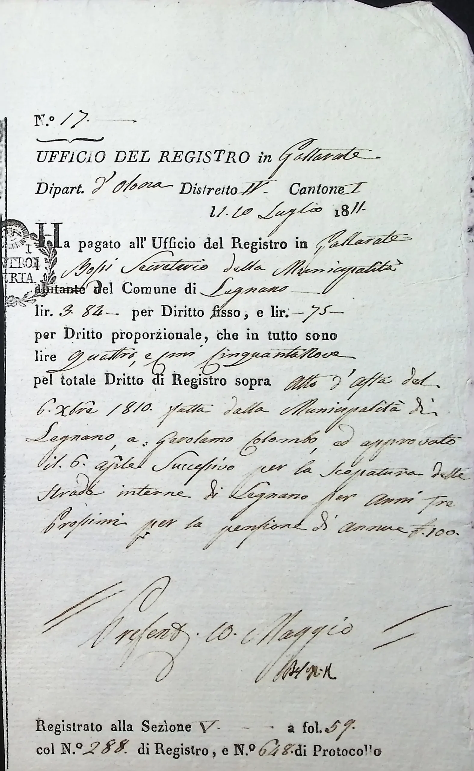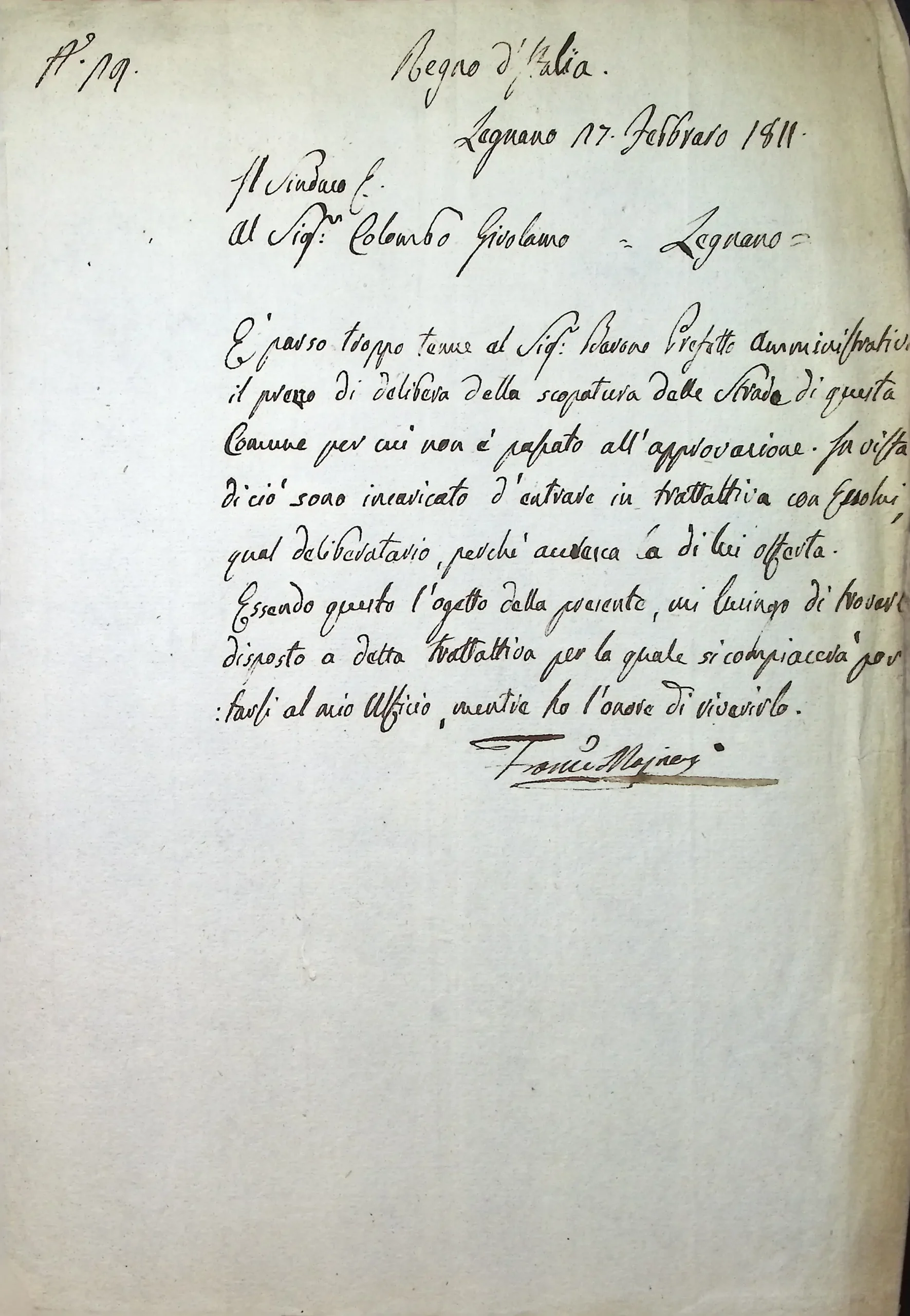 Appalto del servizio di spazzatura delle strade interne del Comune per il triennio 1811 – 1813