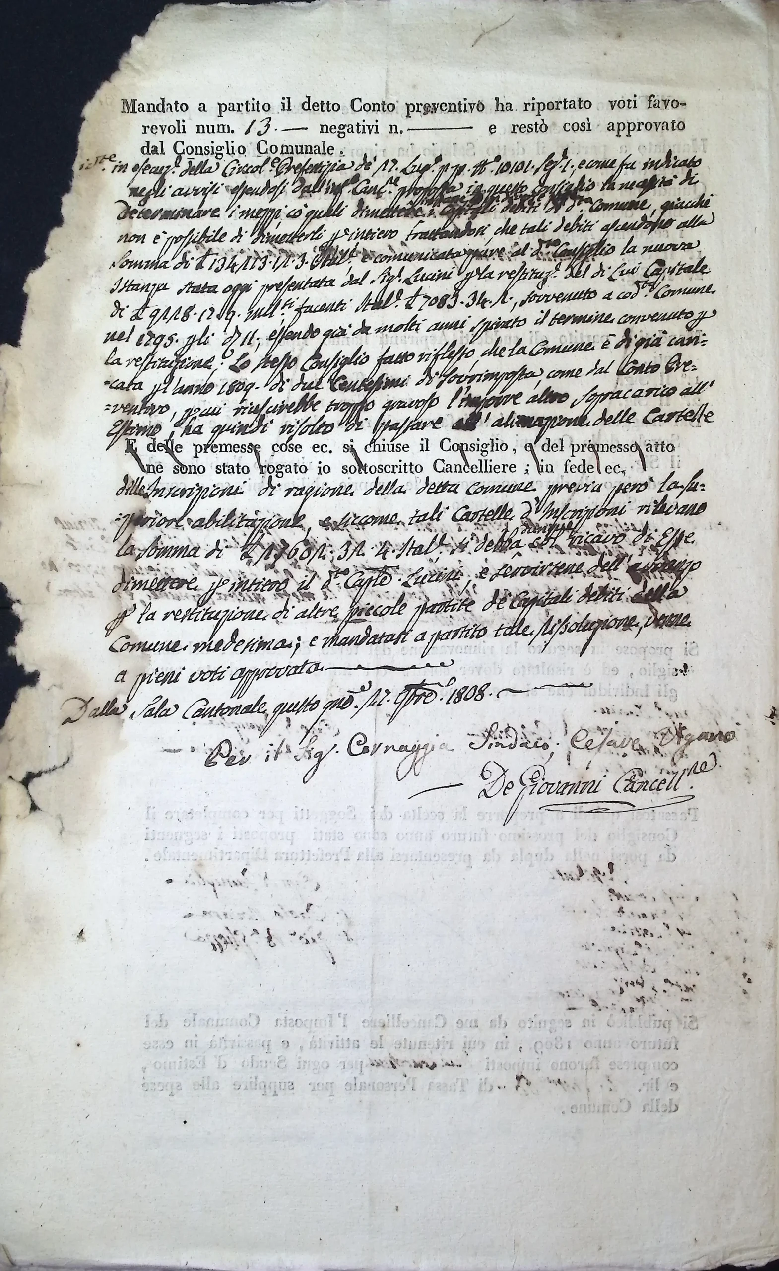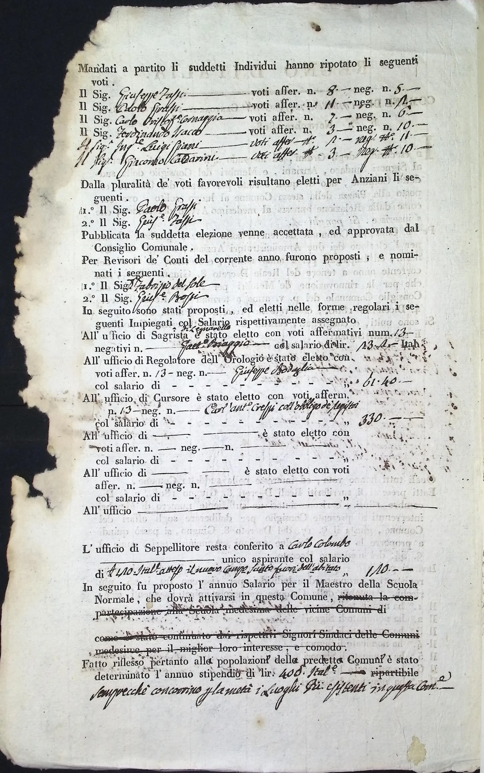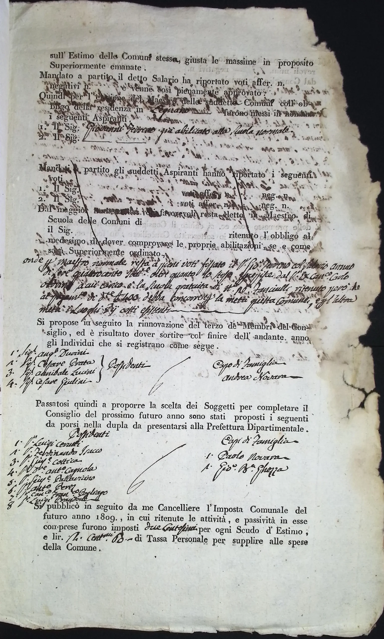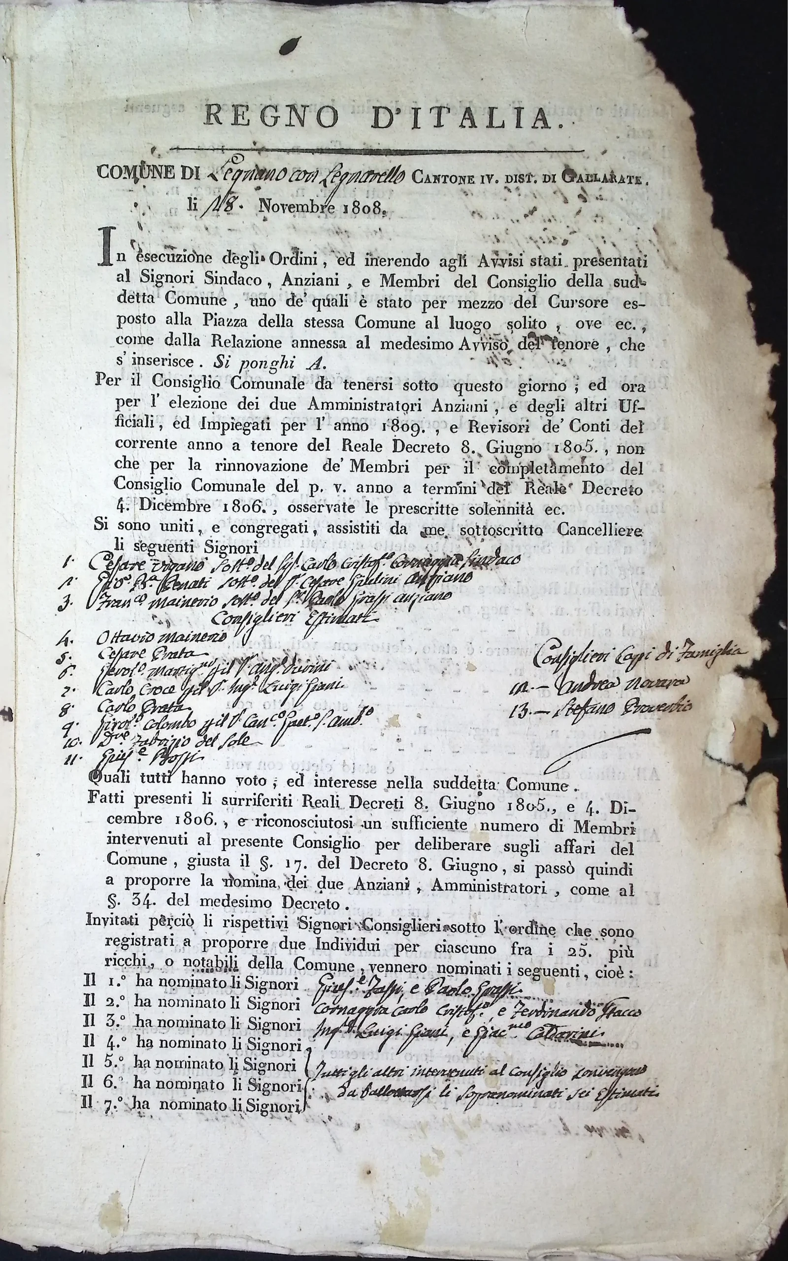 Verbale dell’adunanza del Consiglio Comunale per la nomina dei due amministratori anziani e degli altri impiegati per l’anno 1809