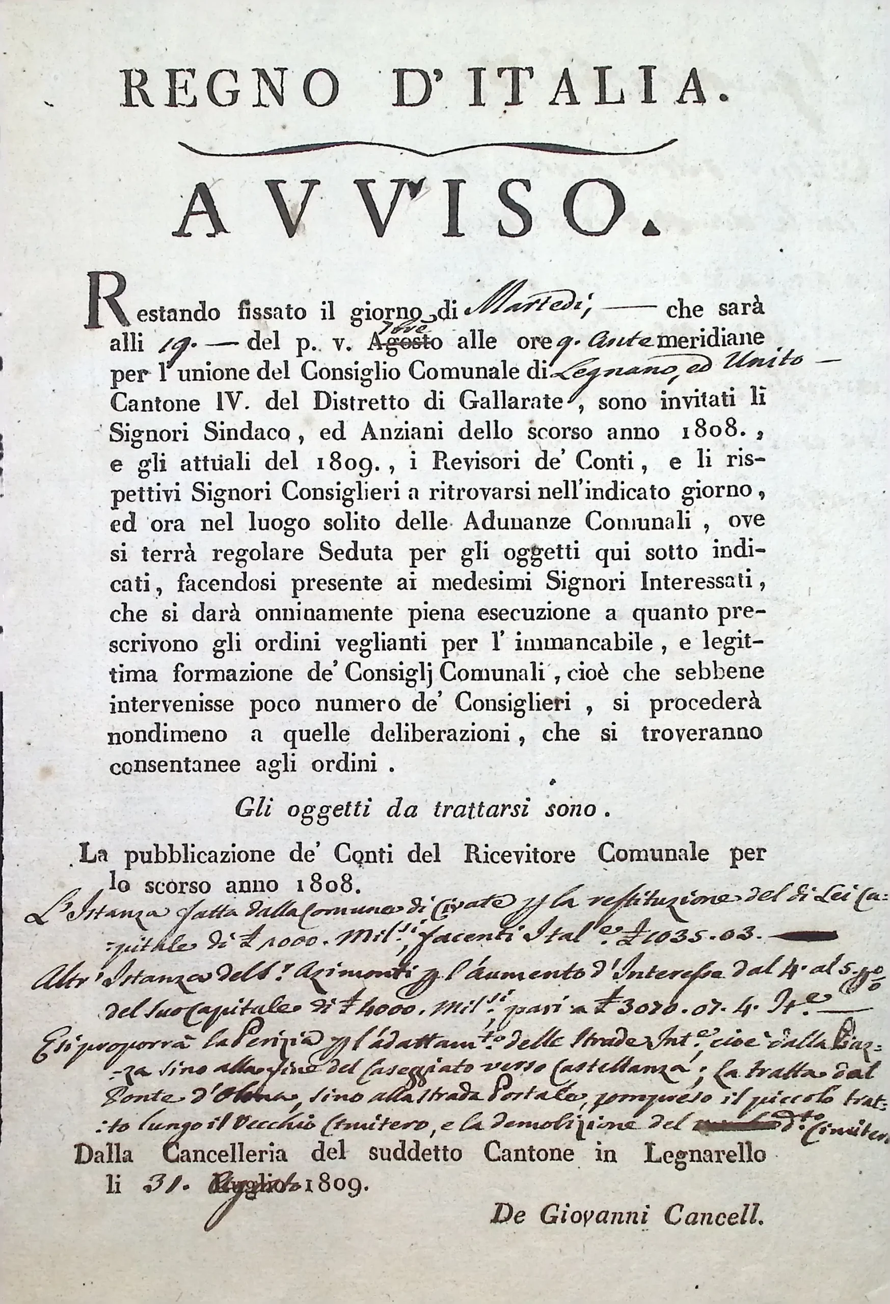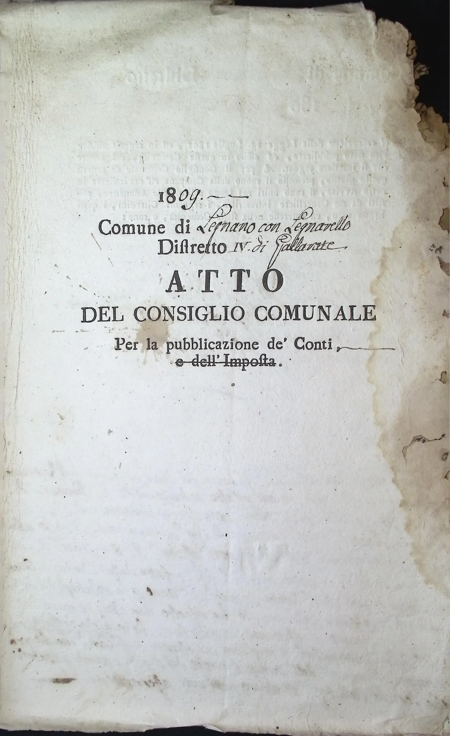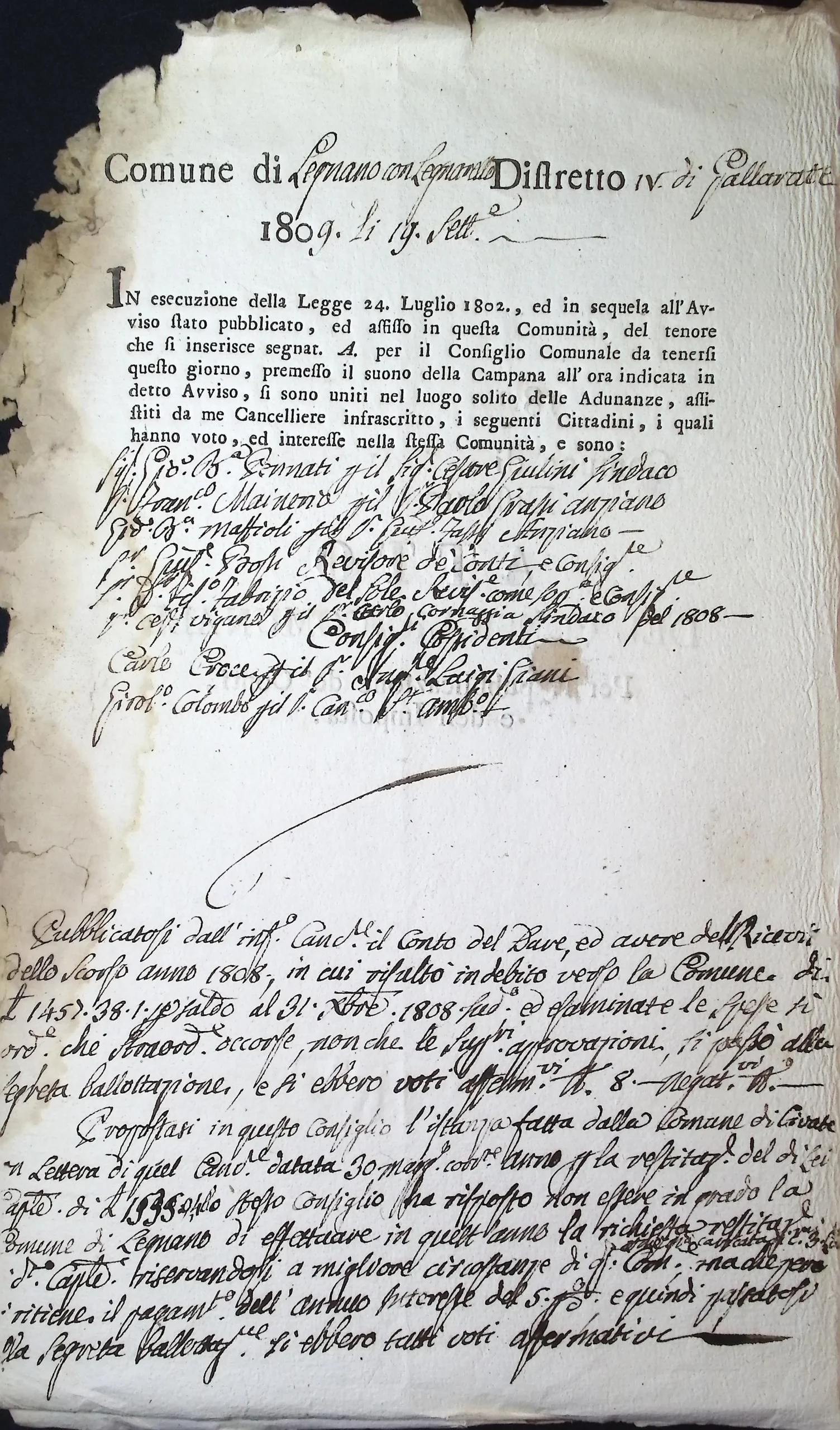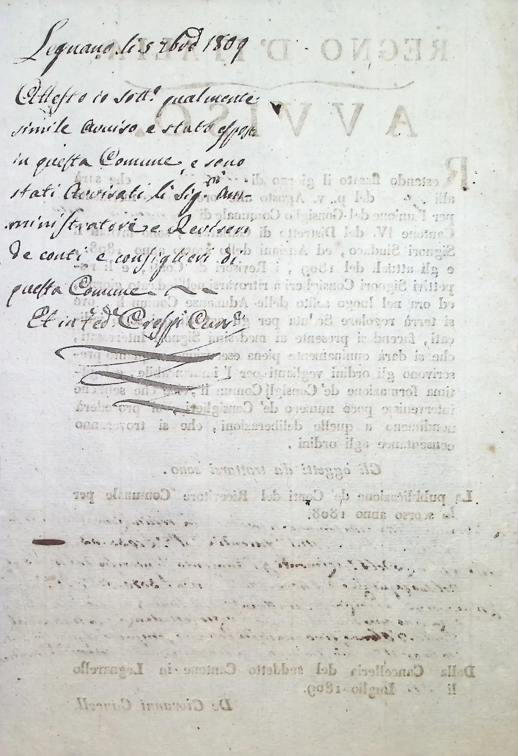 Verbale dell’adunanza del Consiglio Comunale per la pubblicazione dei conti del 1808