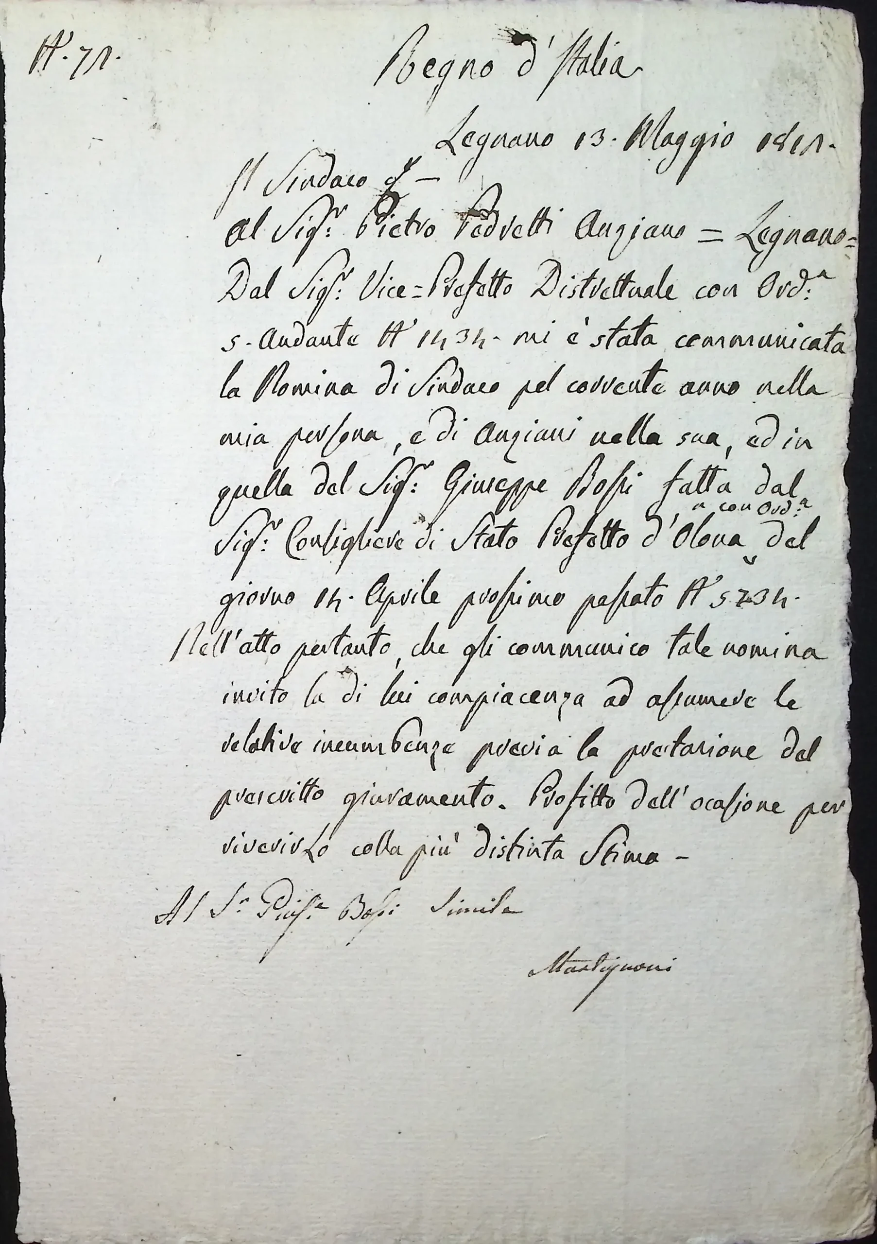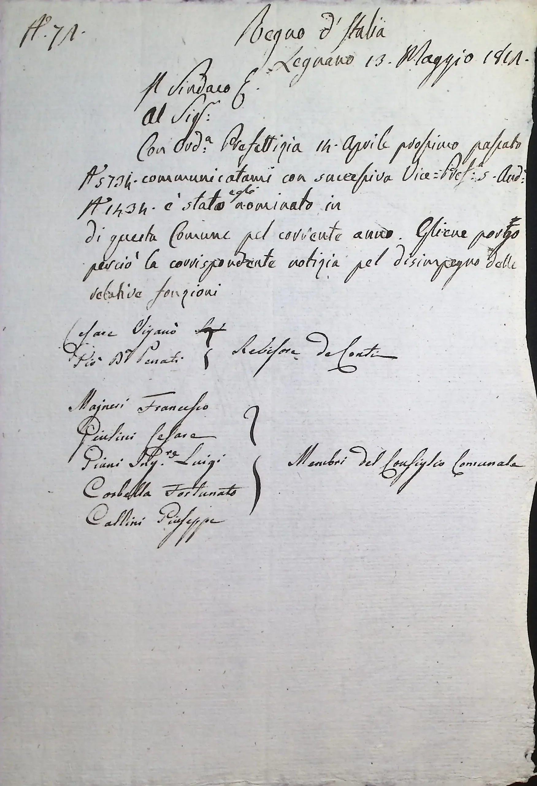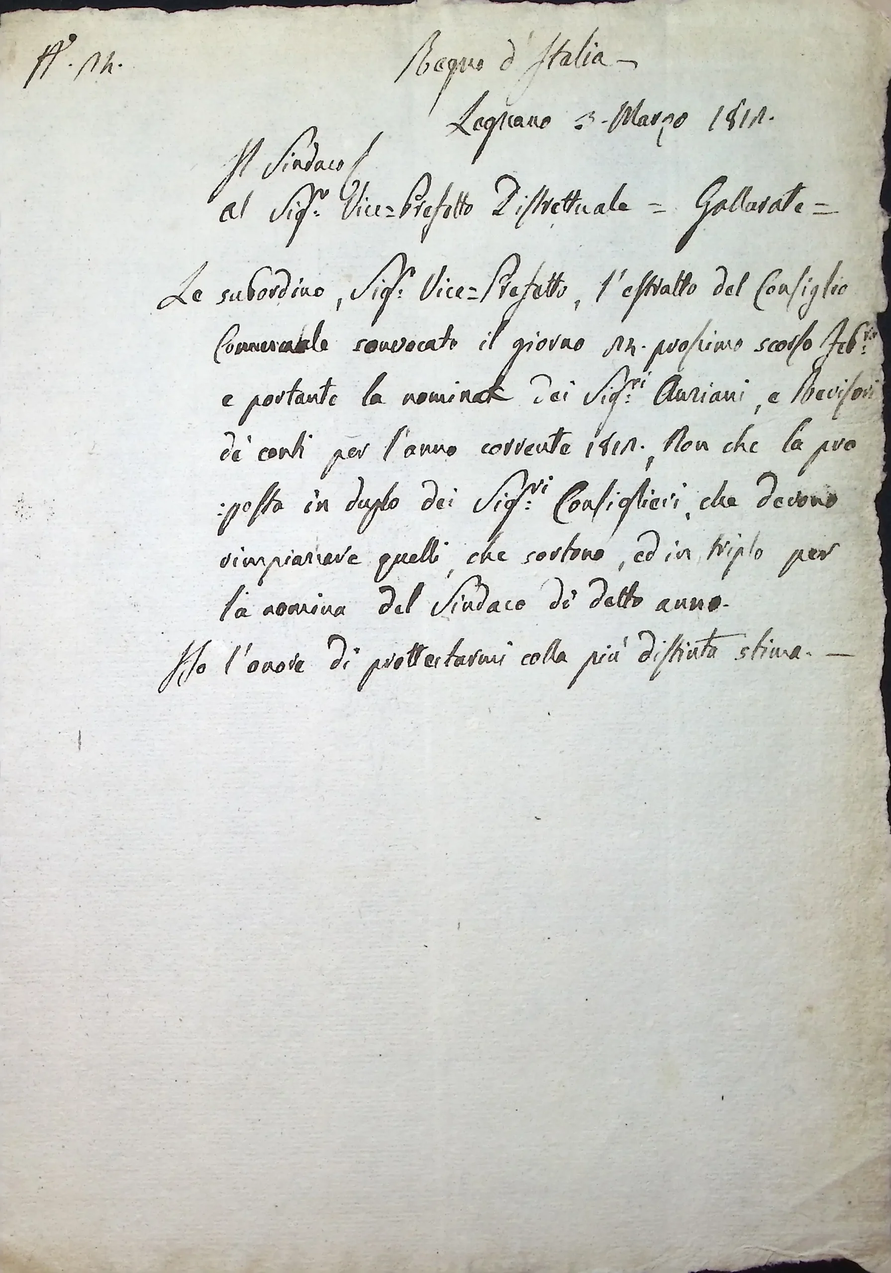 Verbale di giuramento del Sindaco e degli anziani del Comune nominati dal Prefetto del Dipartimento per l’anno 1812