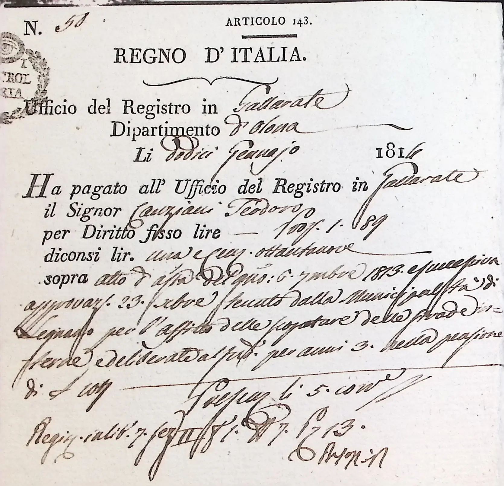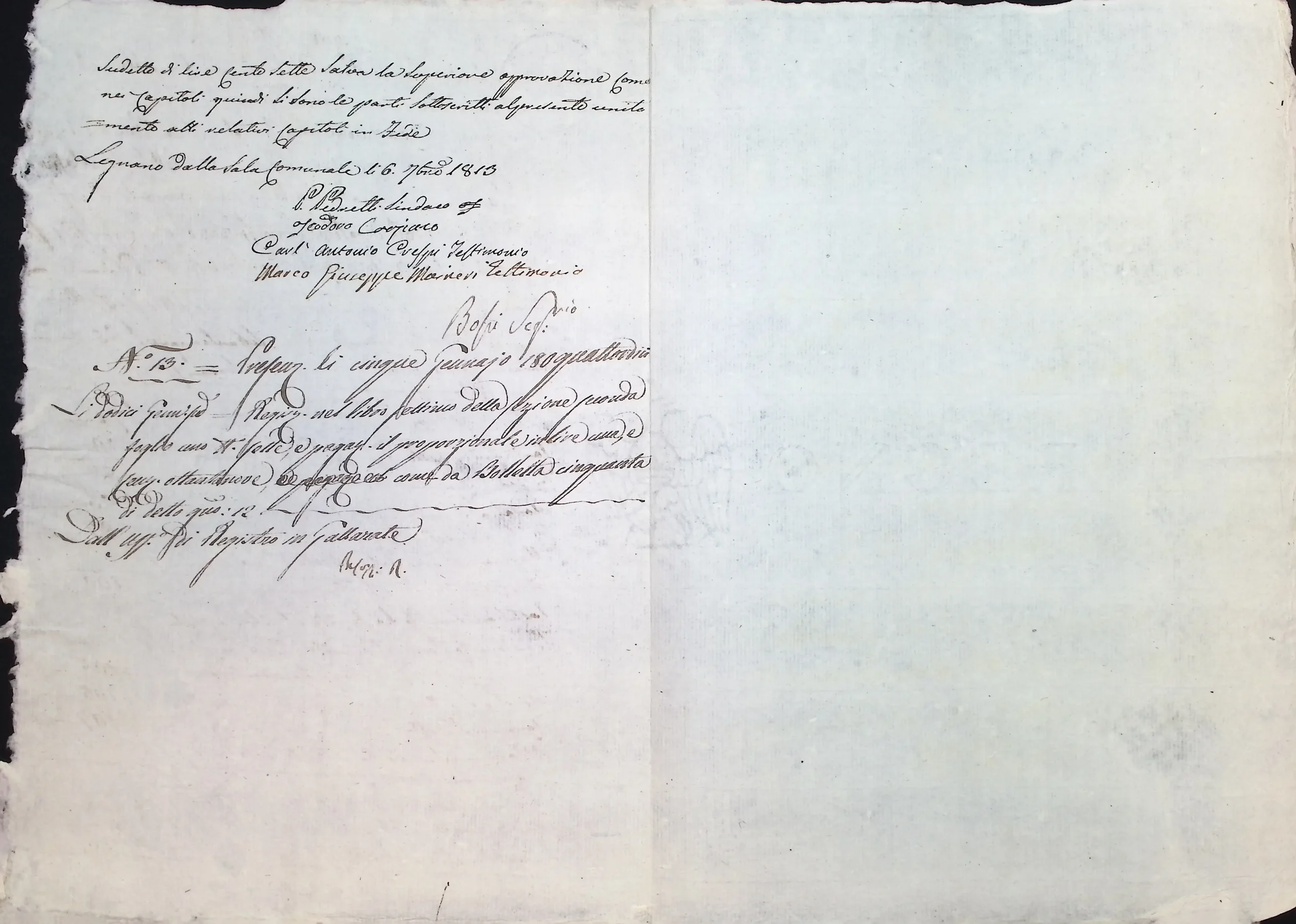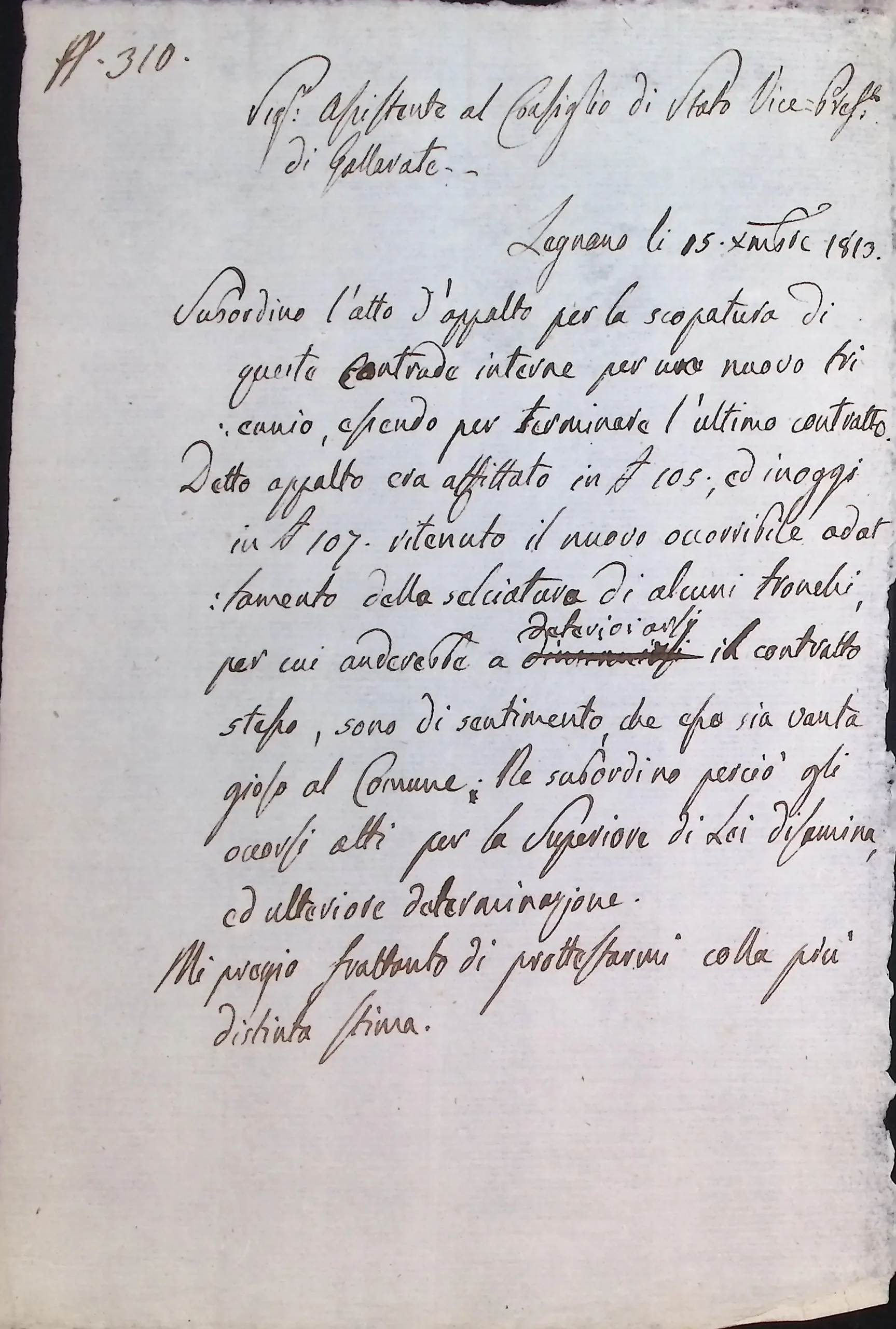 Verbale e capitoli dell’appalto del servizio spazzatura alle strade comunali e spurgo delle rogge per il triennio 1813-15