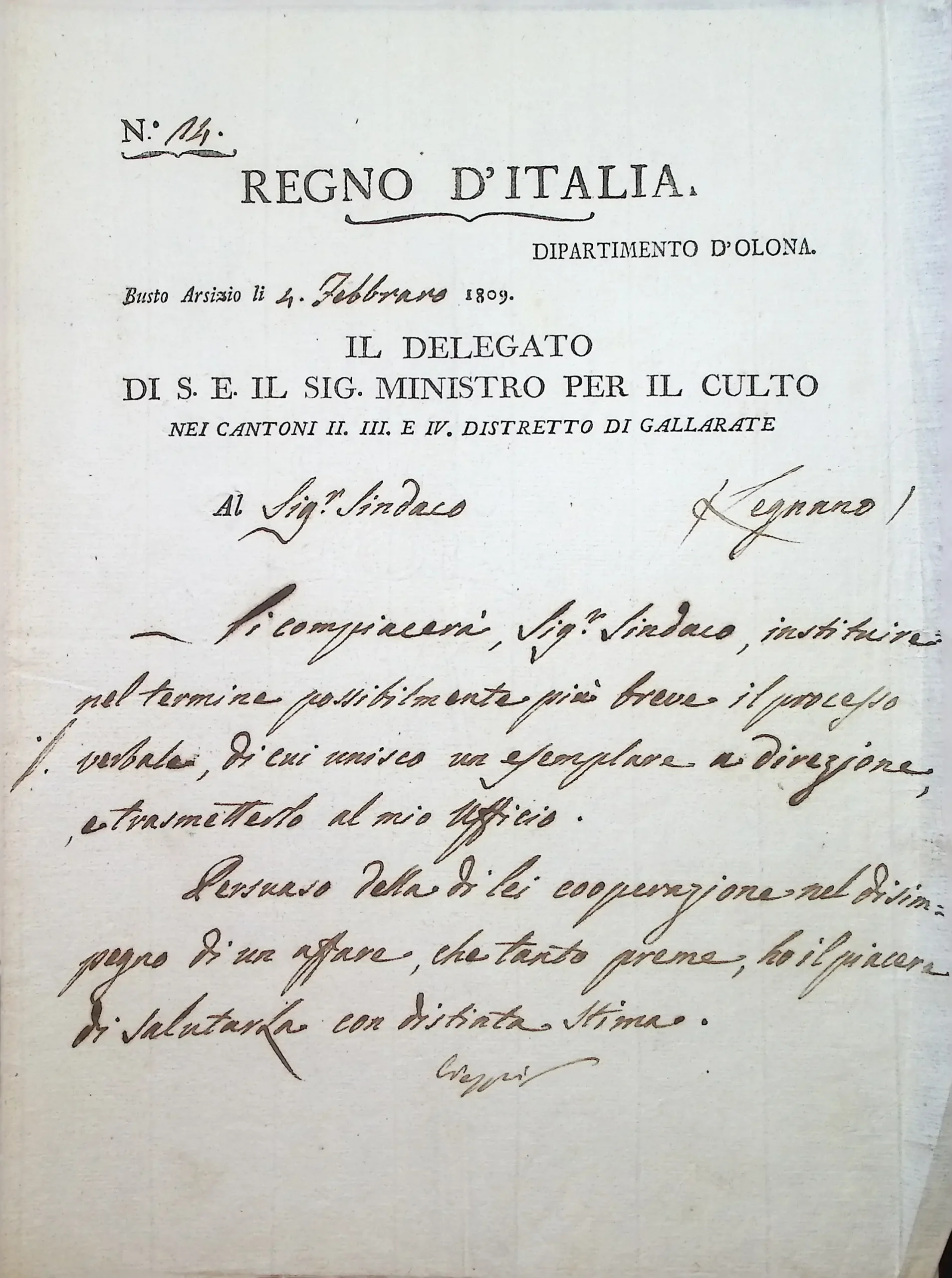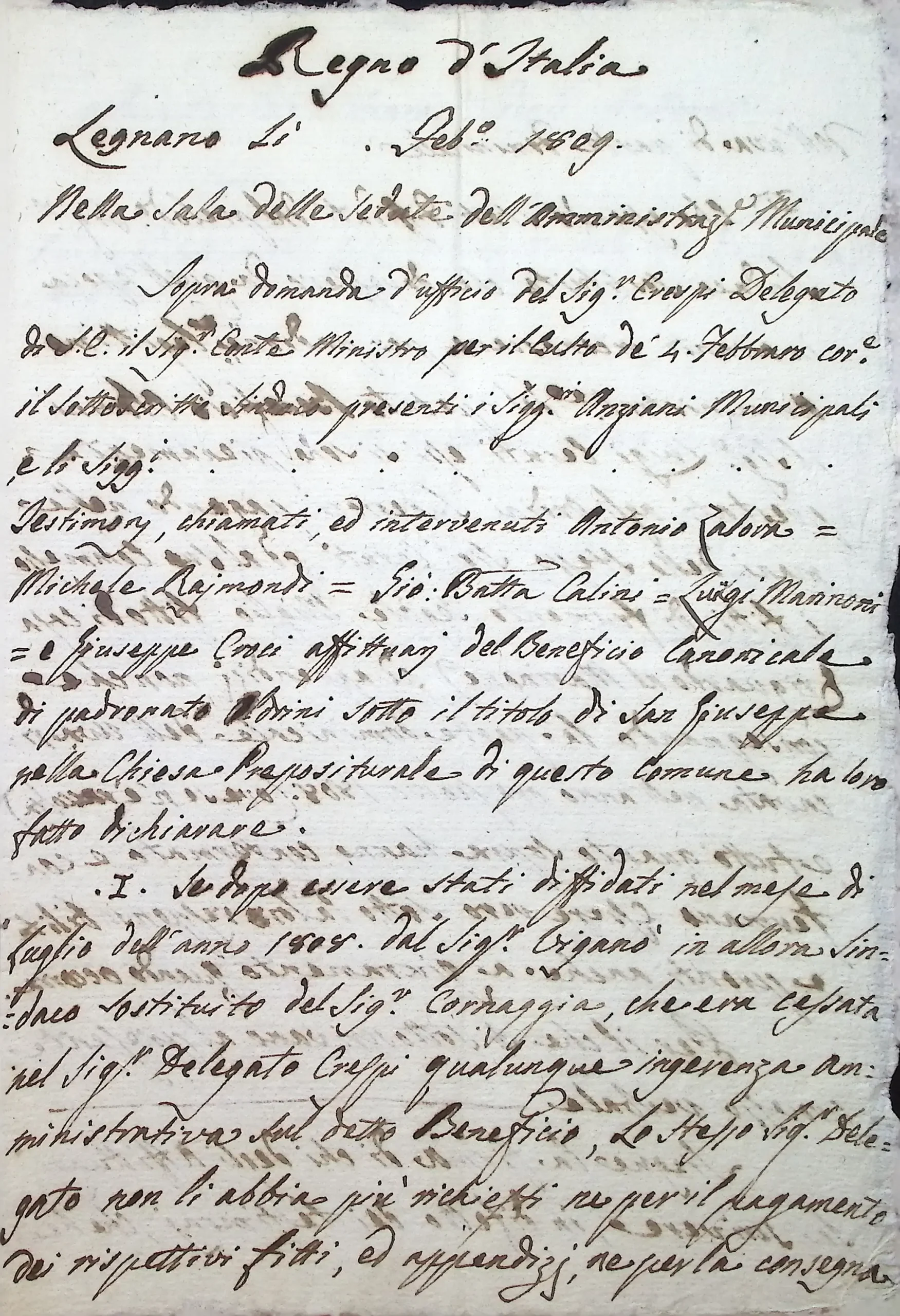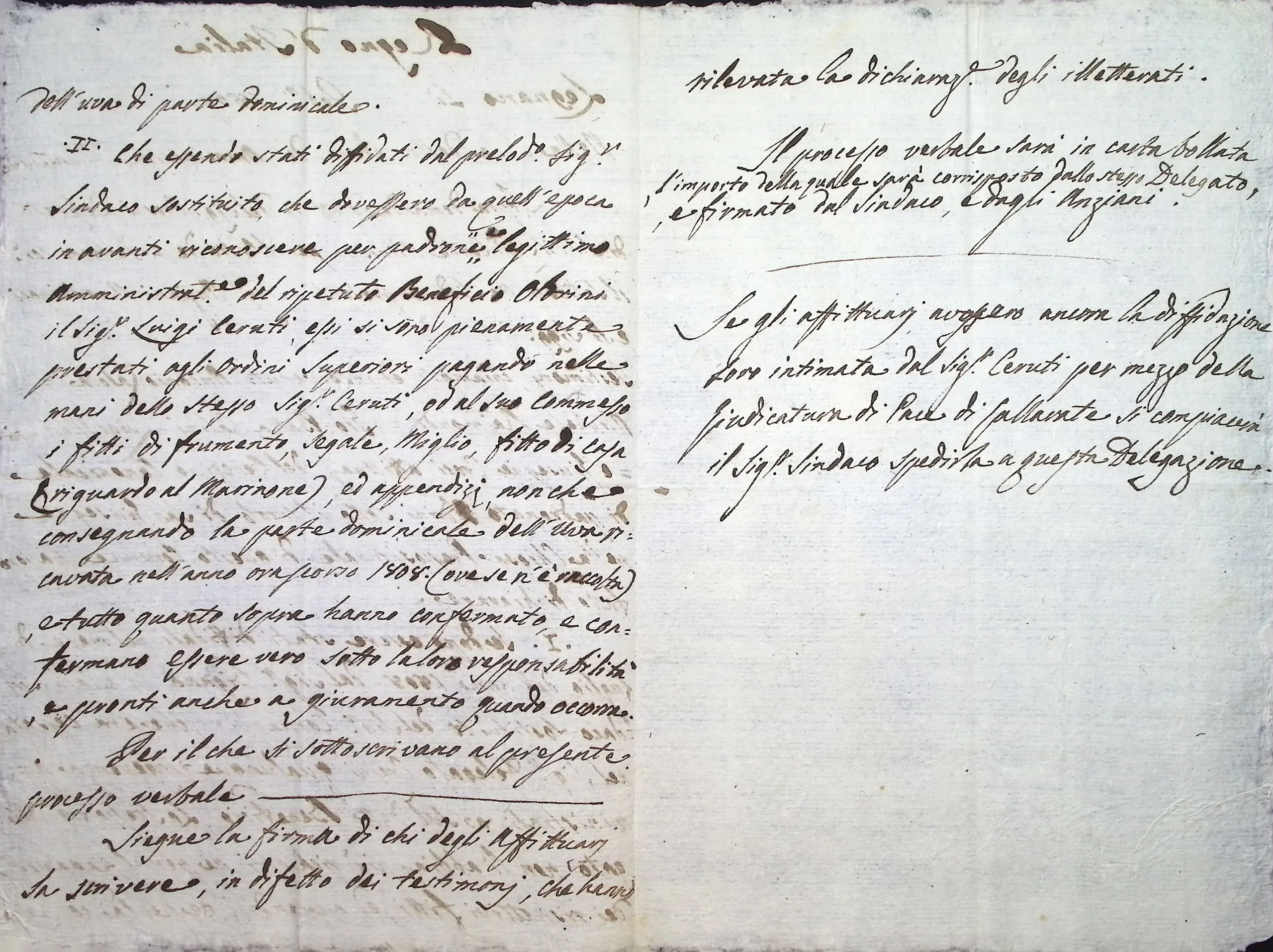 Verbale relativo a dichiarazioni fatte agli affittuari del beneficio canonicale del padronato Oldrini sotto il titolo di S. Giuseppe nella chiesa prepositurale